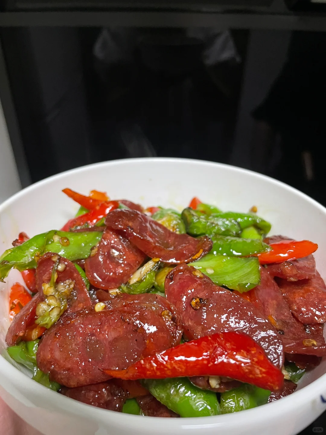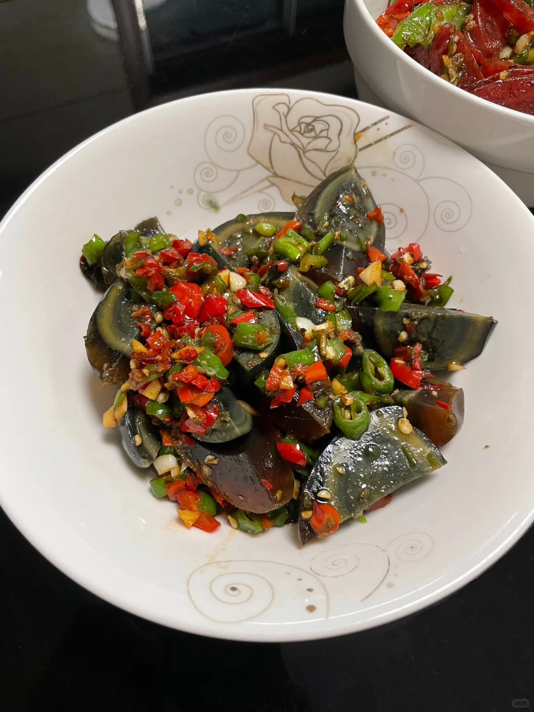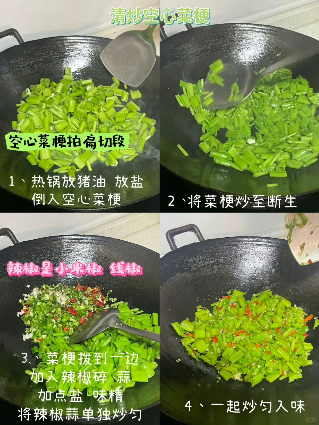 今日菜谱🥬 辣椒炒香肠 清炒空心菜梗 炒皮蛋
