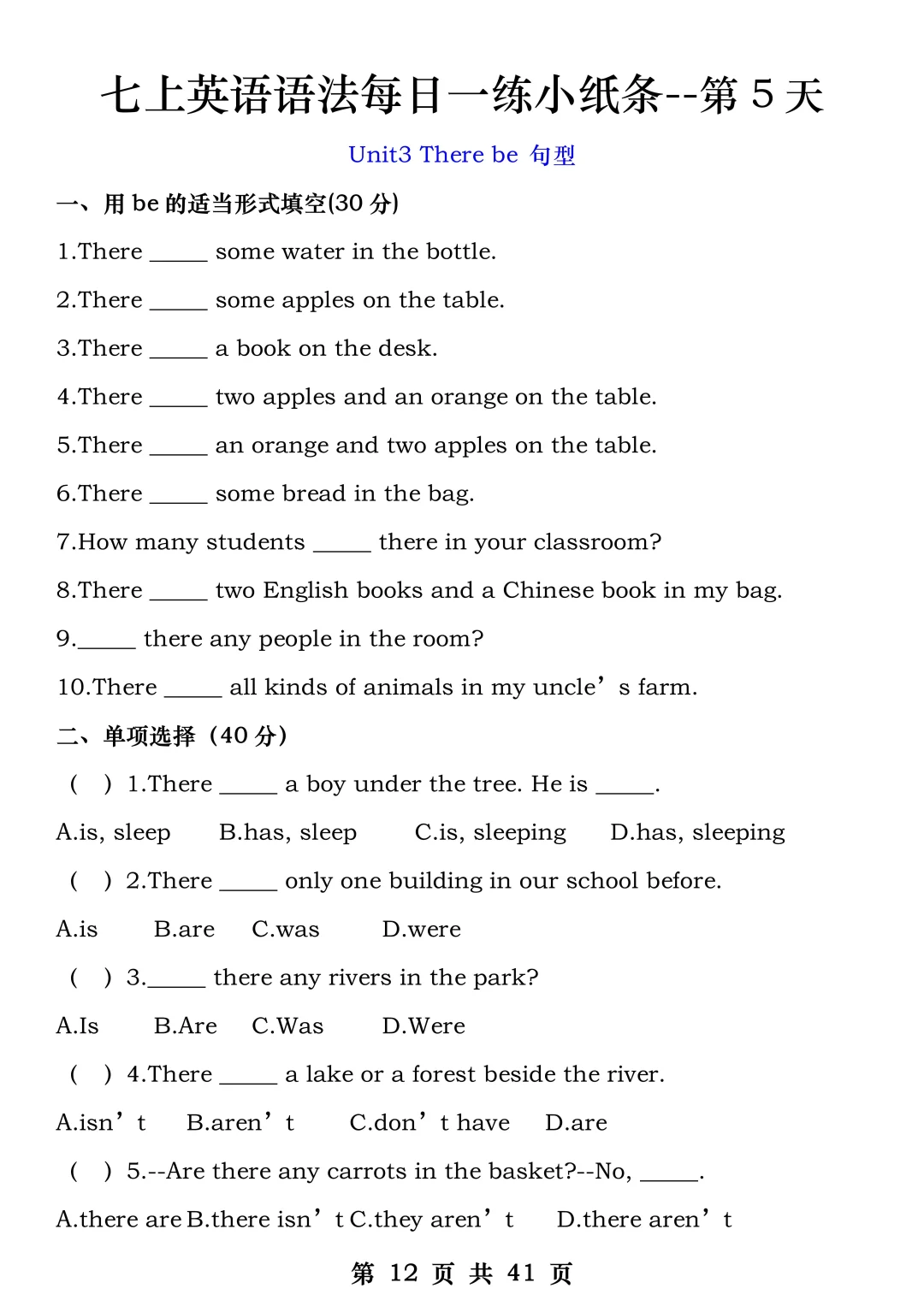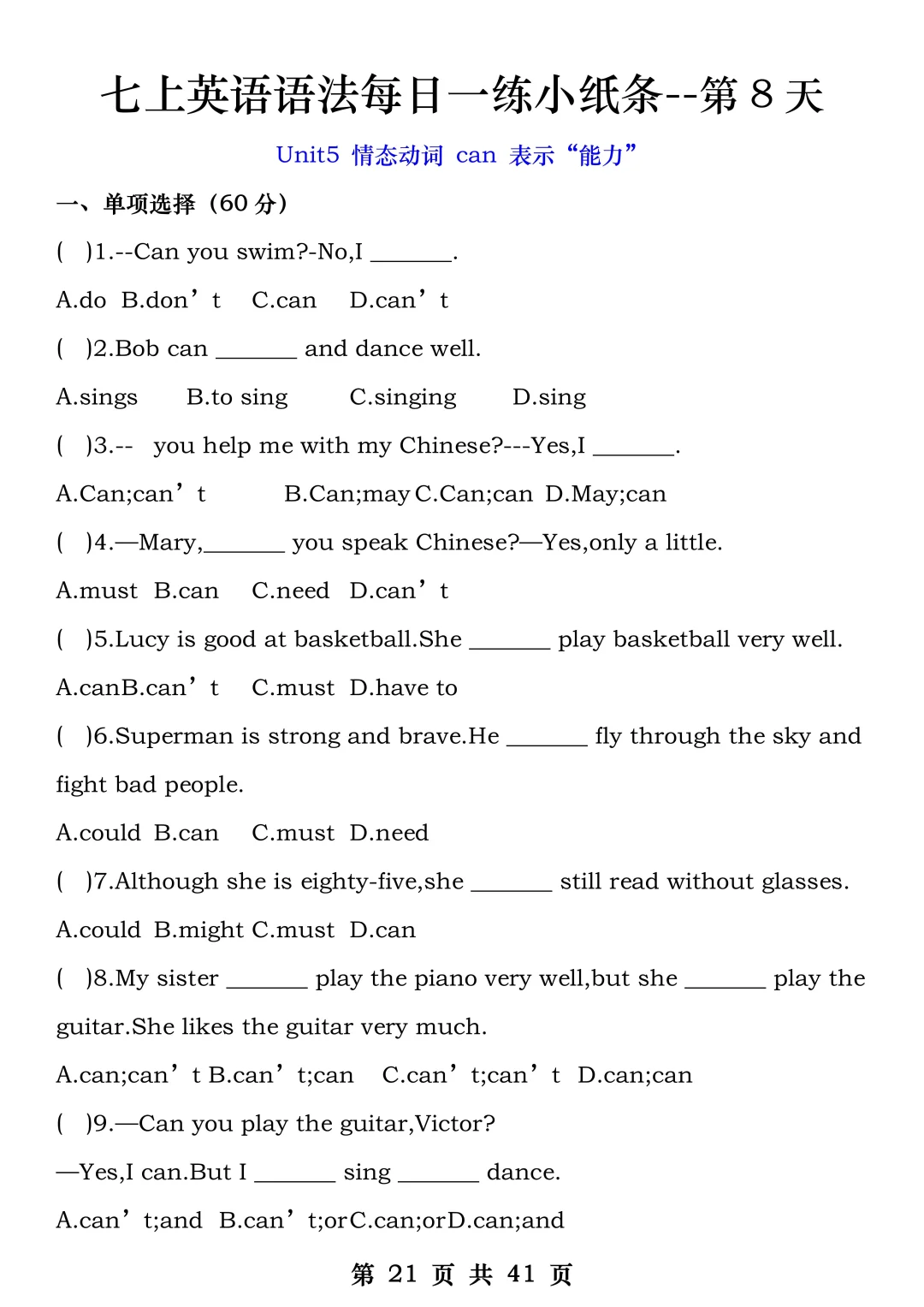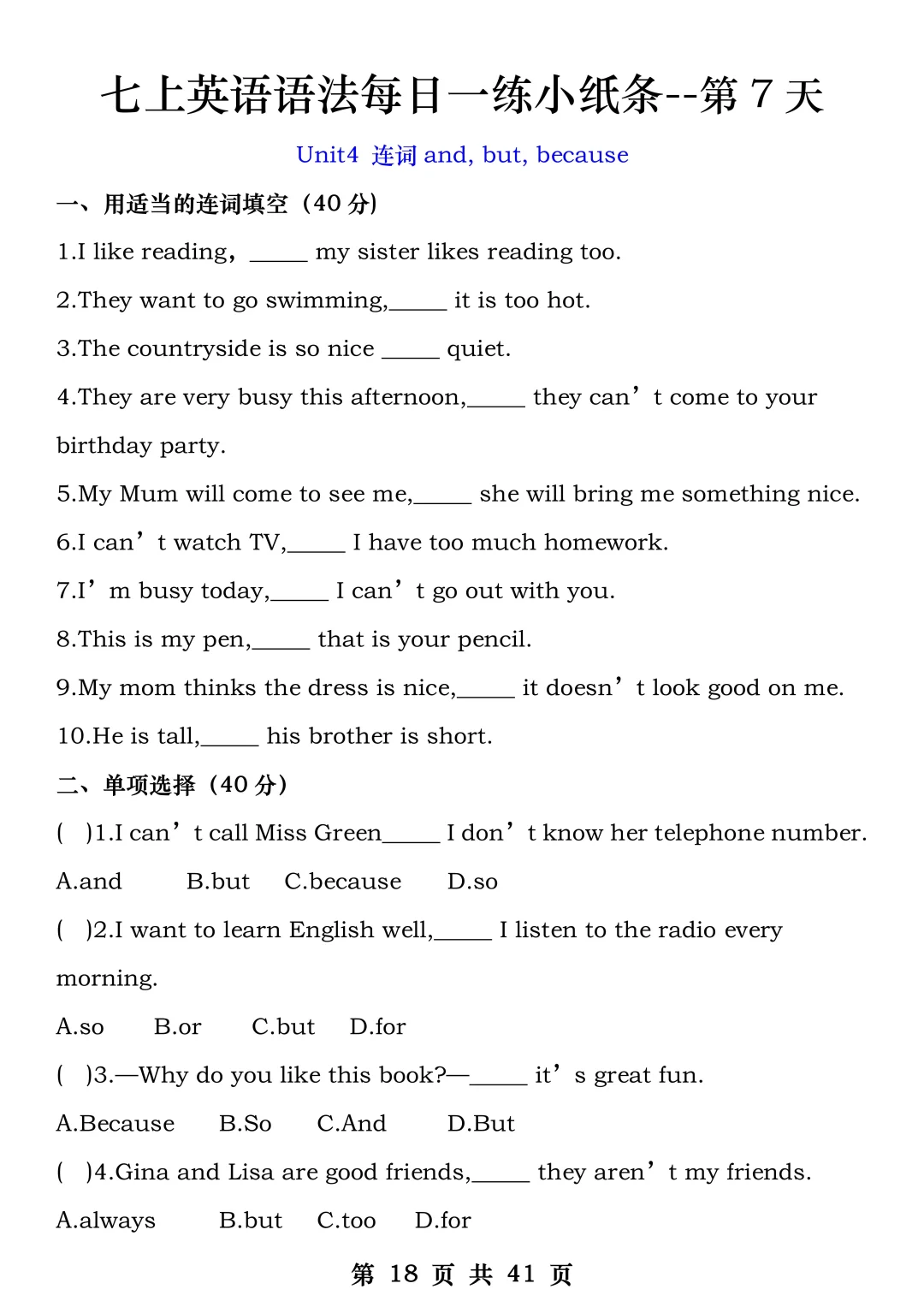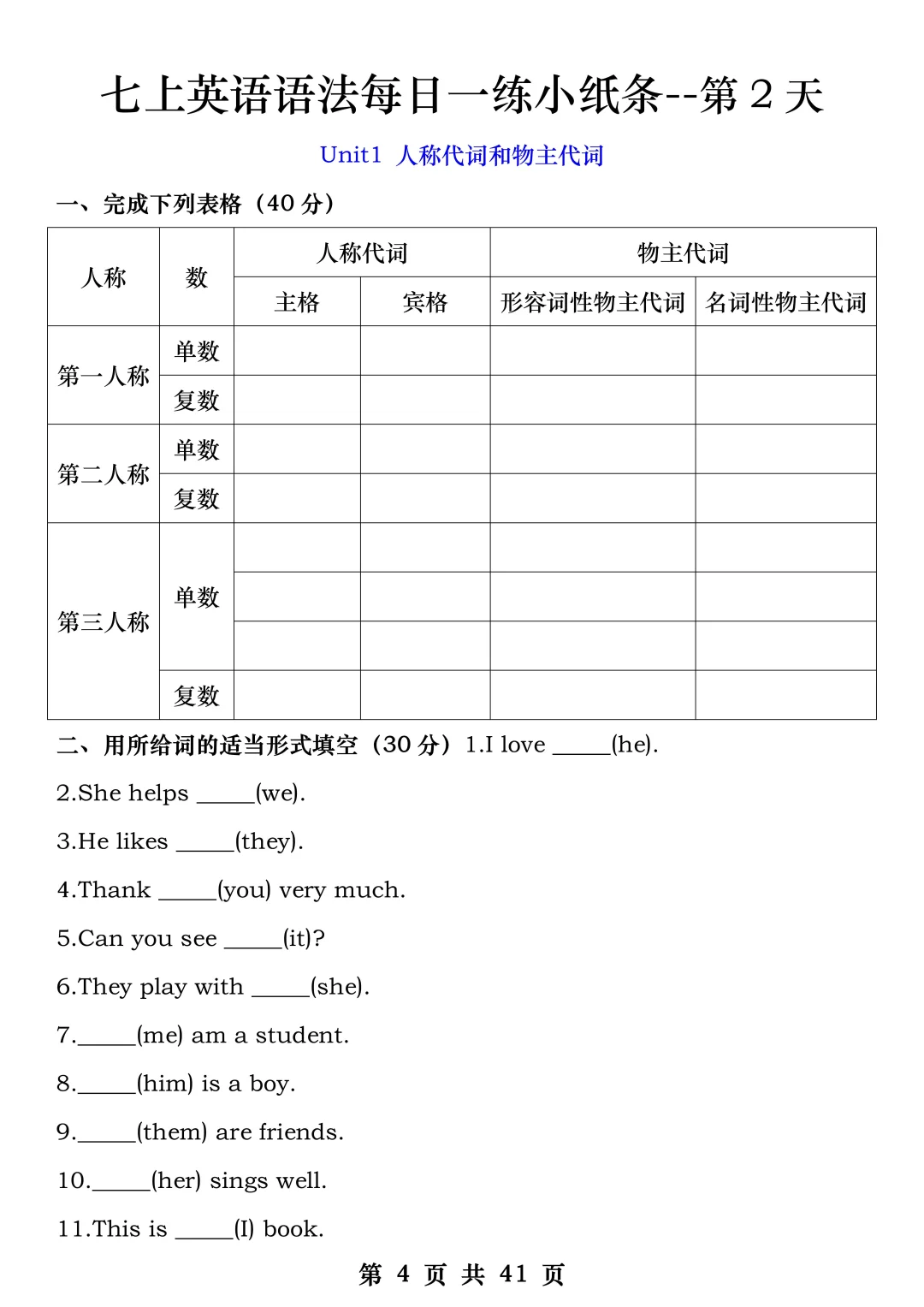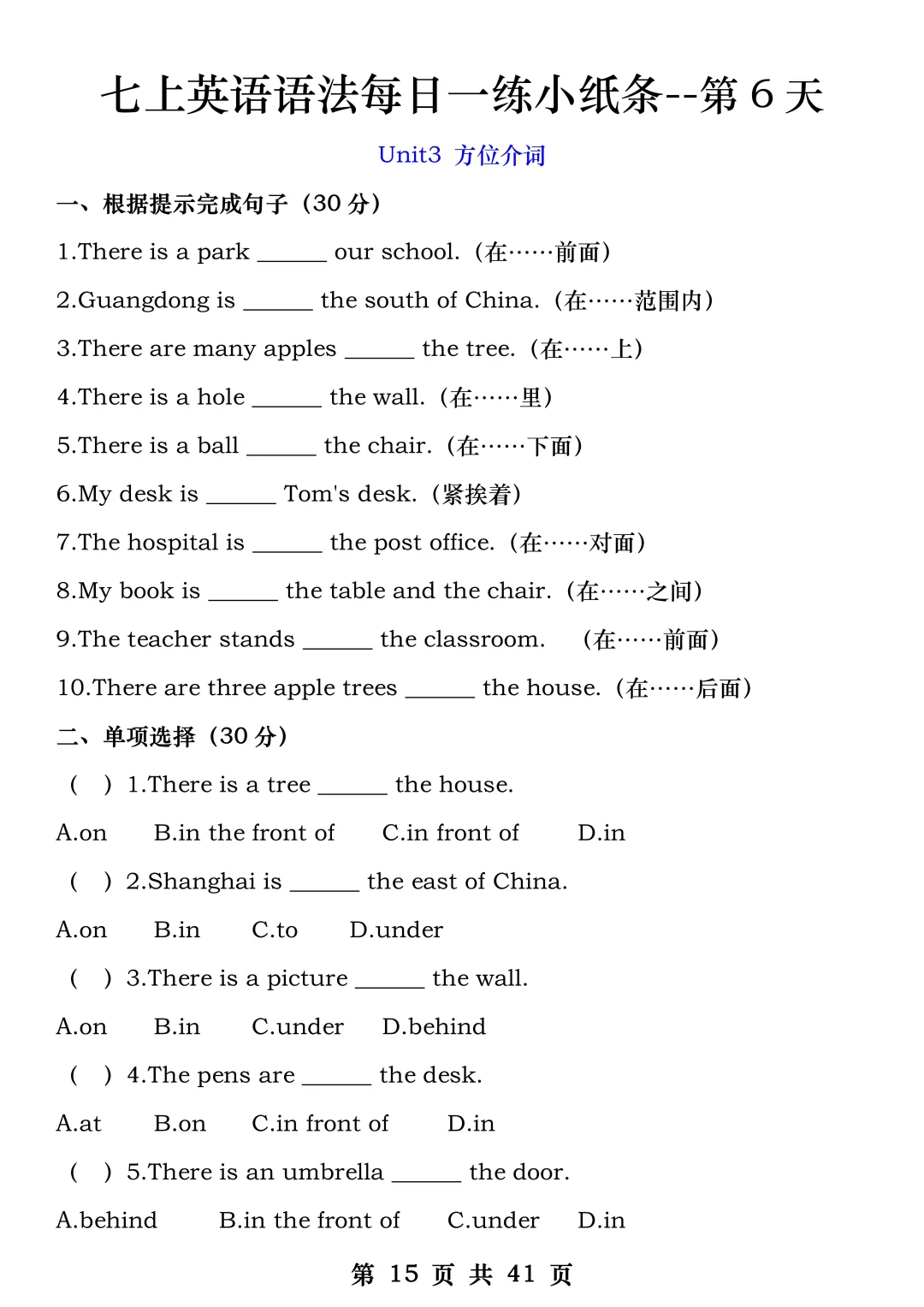火箭班老师发的:七上英语每日一练小纸条