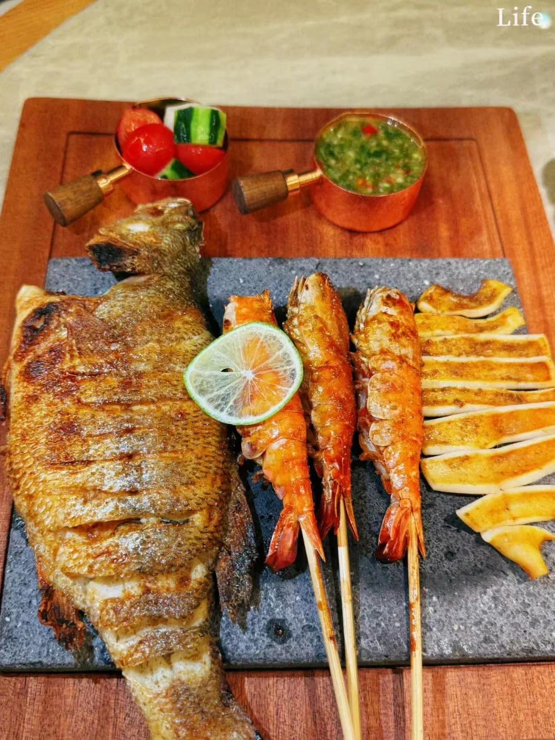 3. 柠檬叶烤鱼海鲜拼盘🐟🔥