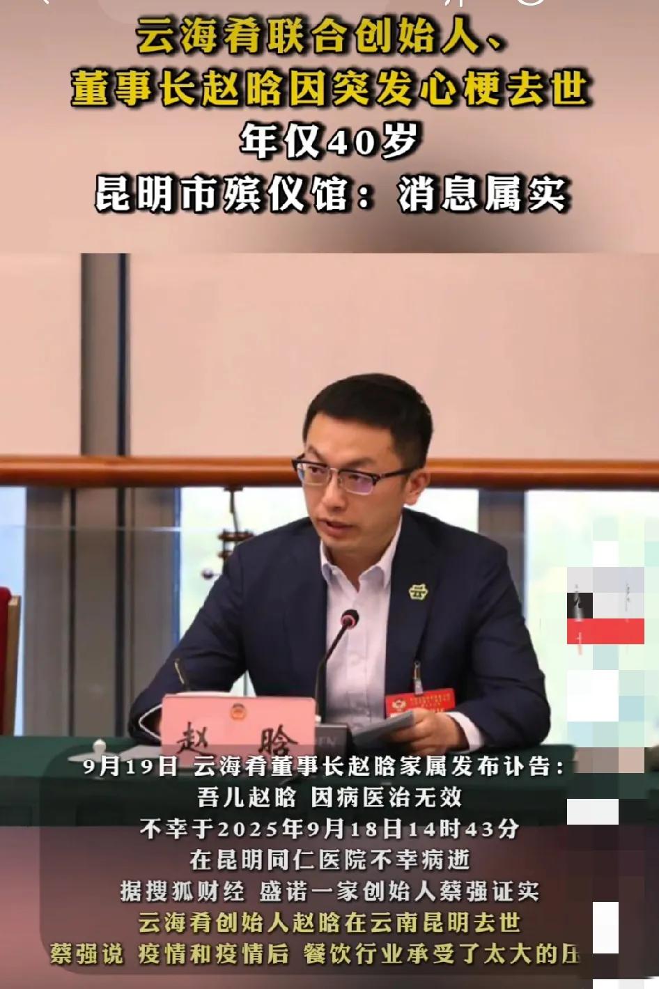 年仅40岁 唉!天妒英才呀!黄泉路上无老少啊!谁也不知道明天和意外哪个先来!赵总年纪轻轻的就走了!留下了自己的企业、父母、妻儿!带着他们无尽的悲伤与思念,离开了人世间!令人唏嘘不已呀!赵总一路走好!愿天堂没有病痛,继续你未完成的事业!
