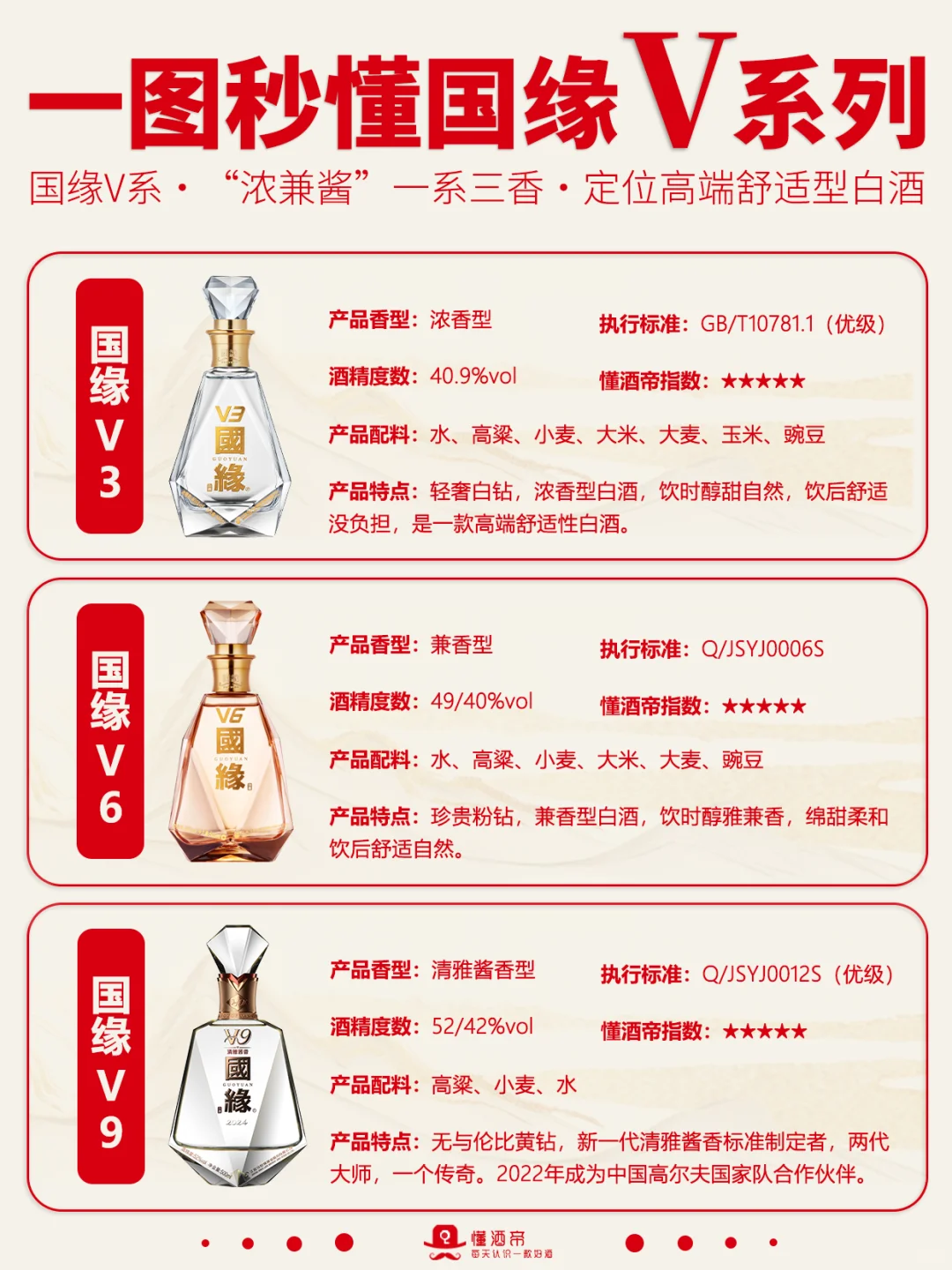 国缘V系,“浓兼酱”一系三香,今世缘酒业旗下高端系列产品,定位“高端舒适型白酒”。