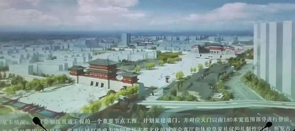 听说应天门南广场要启动了,图中这一片都要拆迁掉。 应天门南广场有两个重要的建筑,一个是端门,一个是天枢,希望都能进行复建。洛阳博物馆门前的那根柱子就是代表着天枢,记载着周边各个少数民族对大周皇帝武则天的歌颂。 定鼎路立交桥看效果图应该是不会拆的,而是将端门整体抬高,覆盖定鼎路立交桥闸道。 毕竟一个立交桥如果拆了的话,代价太大,定鼎路立交桥也是洛阳第一座立交桥,也有二十多年的历史了。 这一片应该是隋唐洛阳城最后的攻坚战了,只要把这一片拆迁了,隋唐洛阳城基本上南北中轴线就完全打通了。 #隋唐洛阳城#