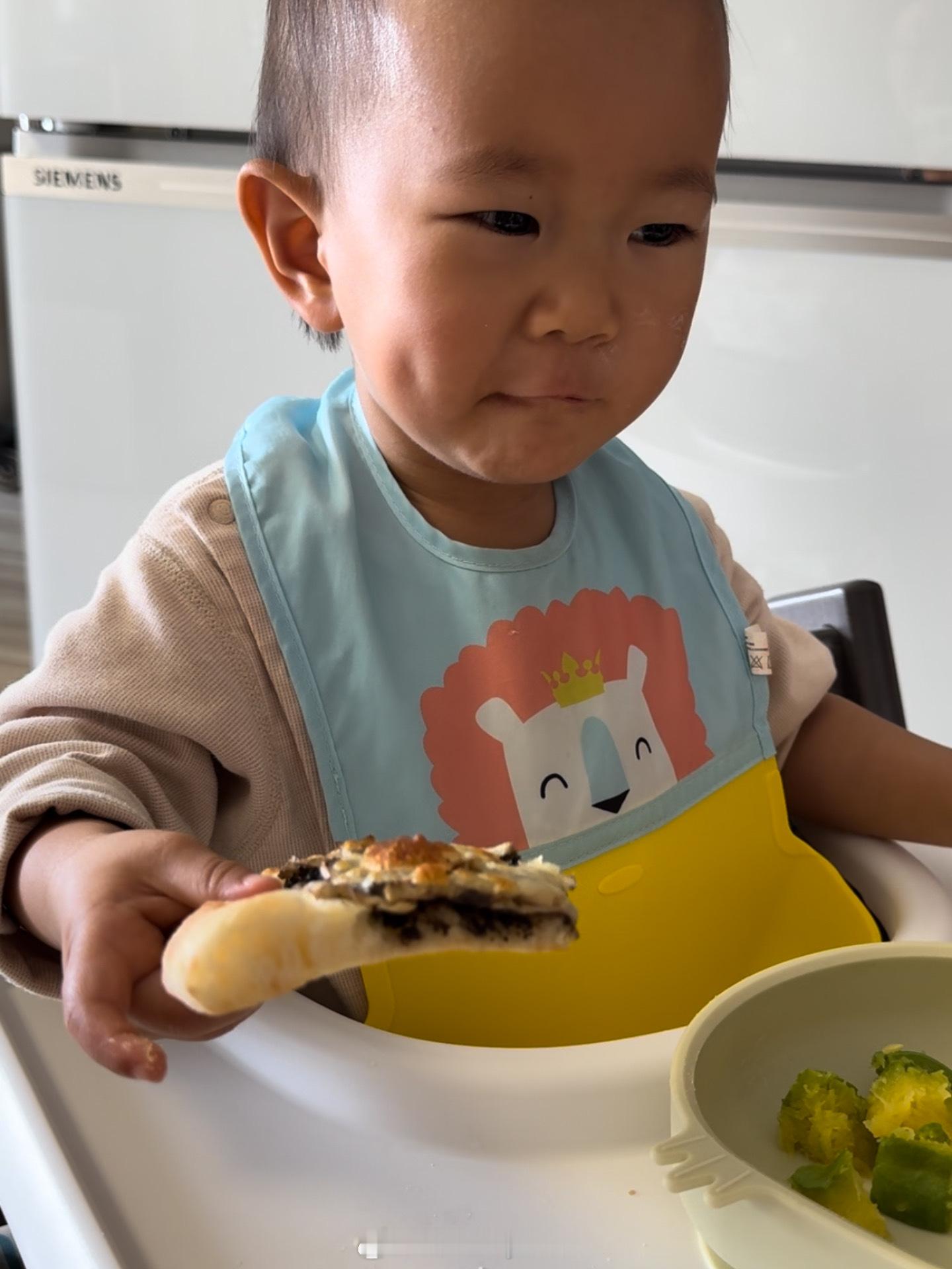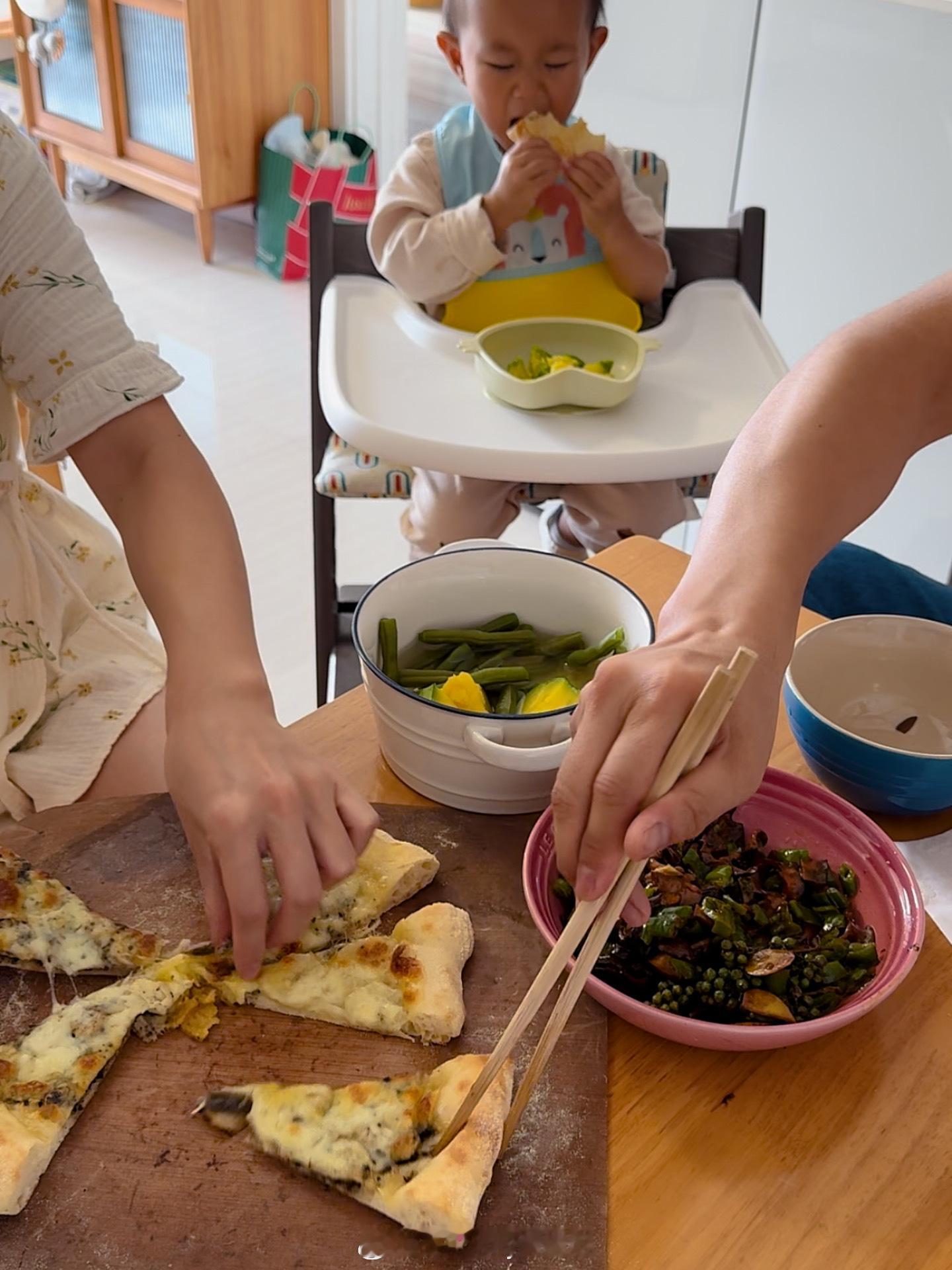 小小助厨今日份的午餐脆皮薄底大气孔巨巨巨好吃的“披~萨~”(豆米又会说了一个新食