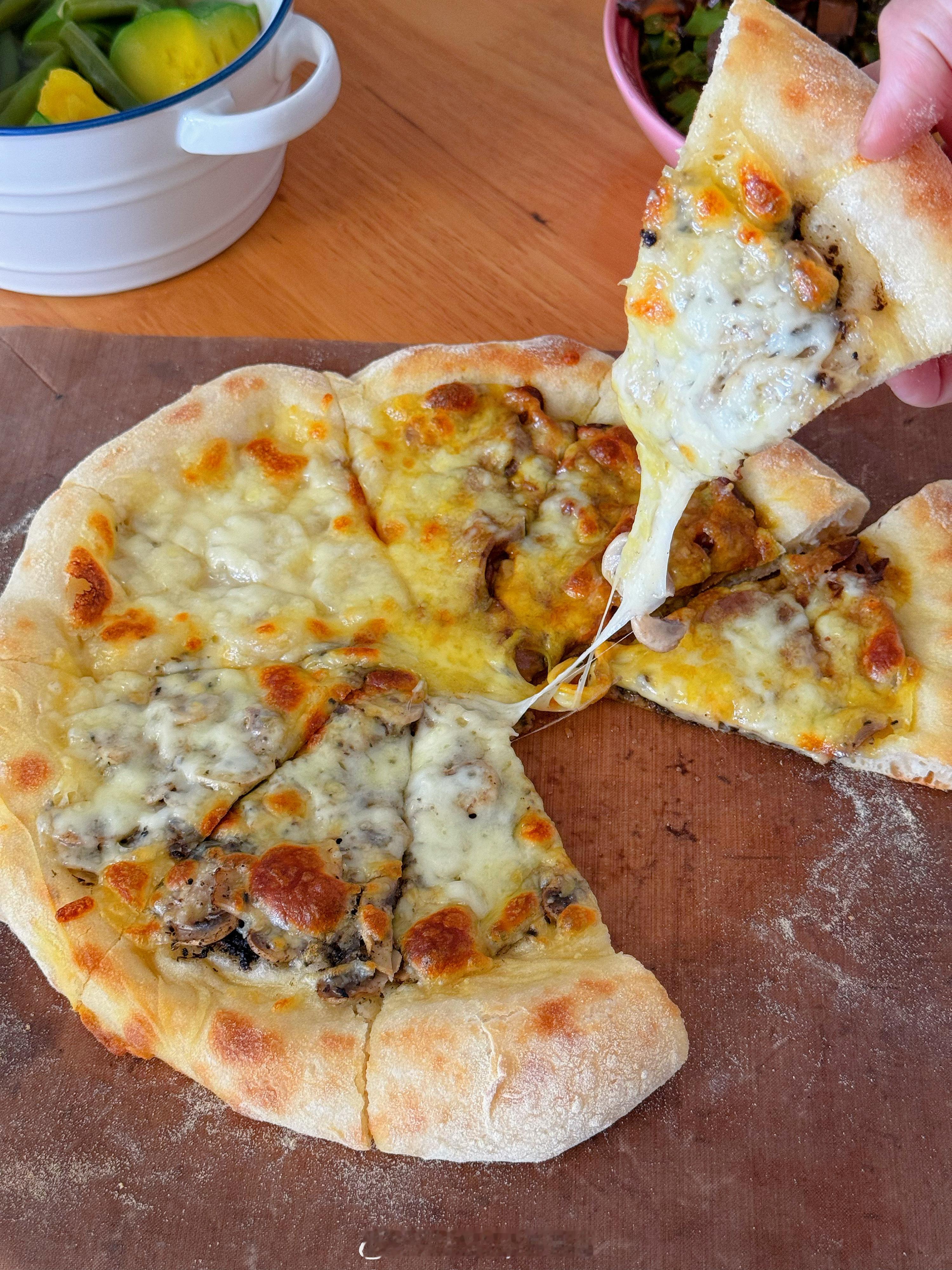 📝记录周末日常今天是一次吃到牛肝菌披萨·黑松露披萨·香蕉披萨的超满足三拼披萨~
