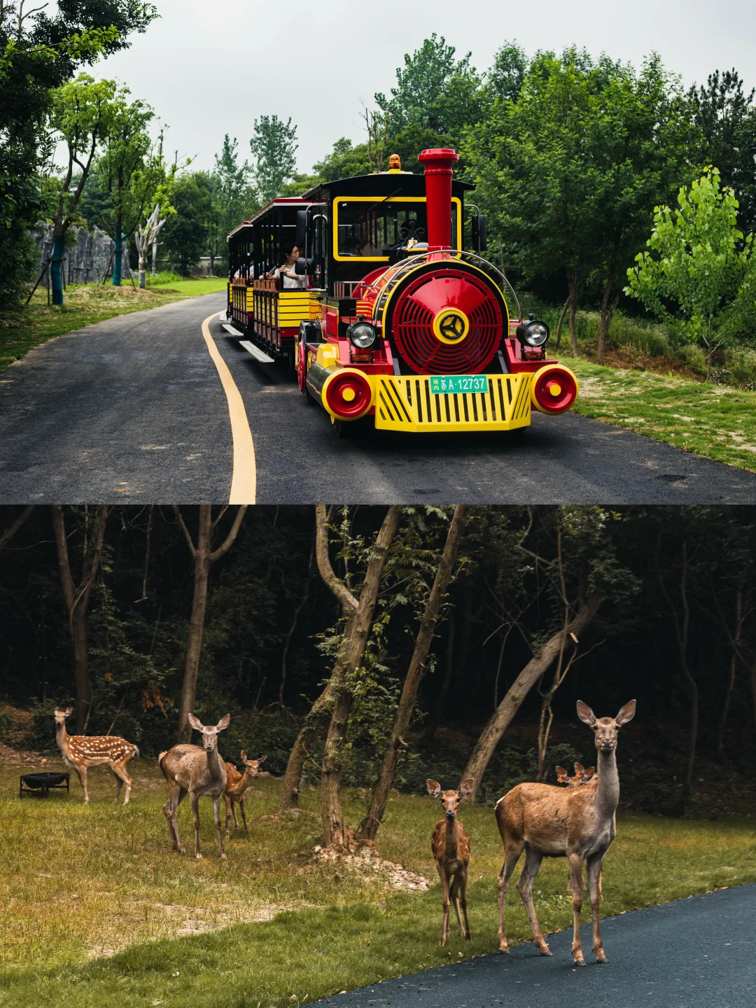 🚚森林小火车漫游:坐着小火车穿梭动物栖息地,长颈鹿会凑过来贴贴,斑马、羚羊在旁边散步,风吹过超惬意,随手拍都是治愈系大片📸