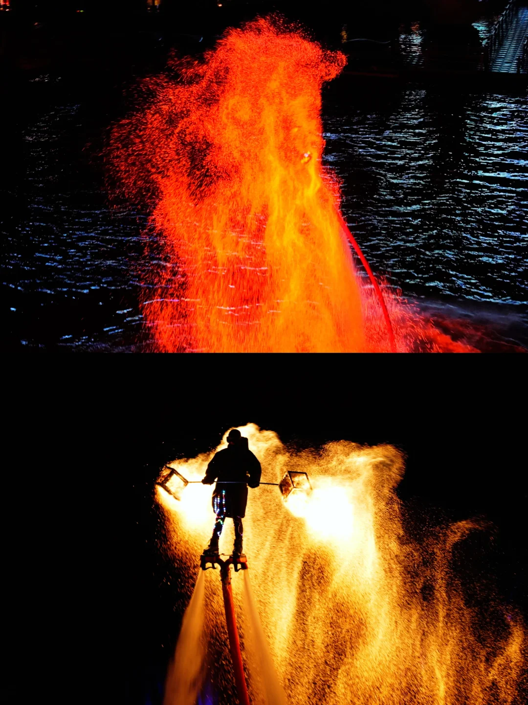 🤖赛博非遗庆华诞:白天看机器人秀超带感,拳击对打有来有回,跳舞时还会摆萌姿互动;晚上湖边火壶飞人直接燃爆夜空,火焰映着湖面绝美,看完还有篝火晚会,跟着音乐蹦跶超解压!