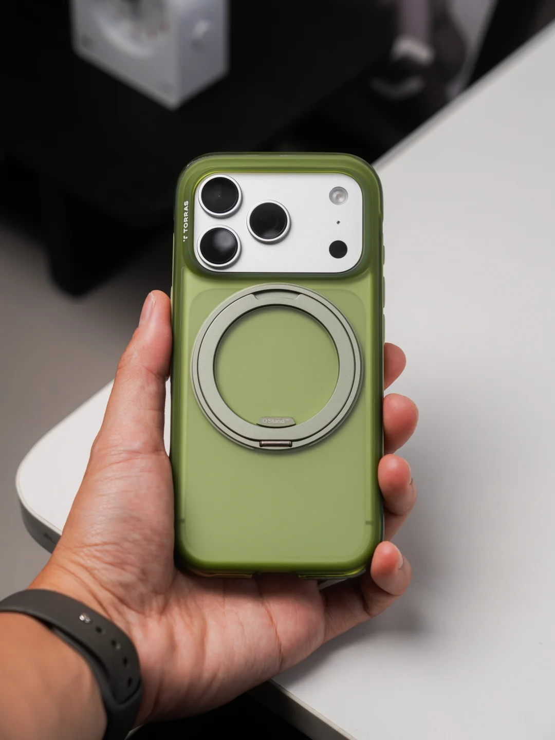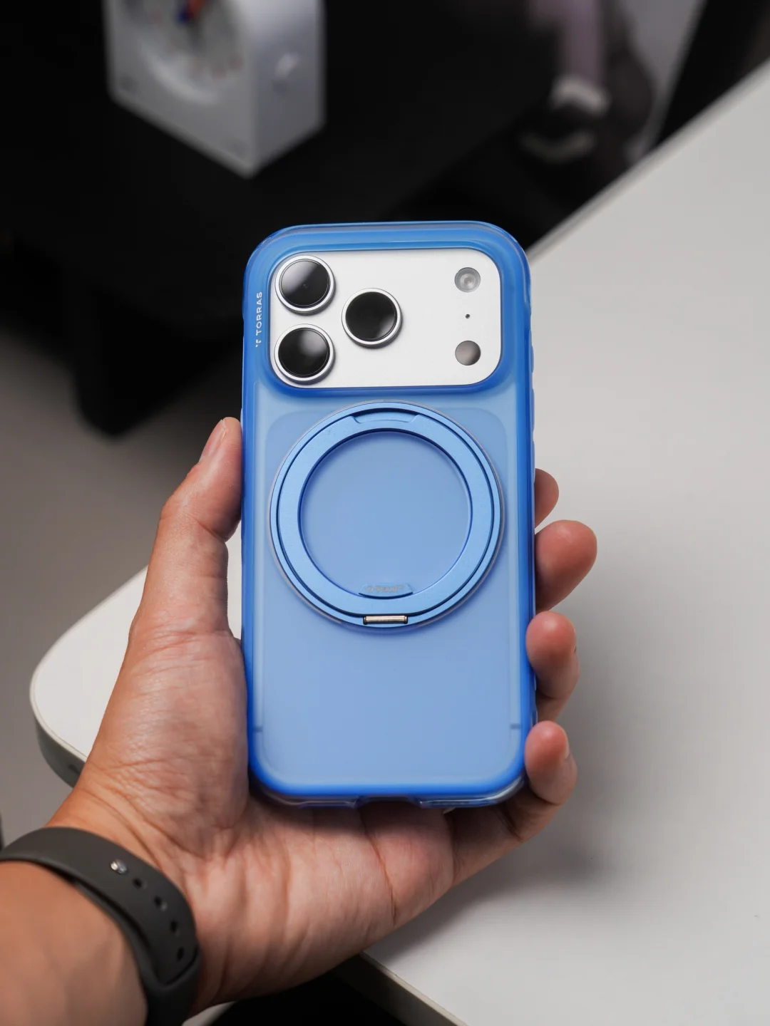 iPhone17Pro 再也没有钛合金的保护了,确实会没有之前那么坚固,所以还是有必要做更强的防摔——我这次还是给它安排了图拉斯 O3Air 支点壳,360°防摔覆盖、侧边防滑更稳,全色系全部拿下了,纠结颜色的可以直接看这篇,O3Air 在 Q3 系列高弹真空气气囊基础上升级了旋转支架,360°旋转支点阻尼感在线,横竖都能稳稳支撑,追剧刷视频/桌面拍摄都更安心;背板服贴不拱、磨砂手感不粘指纹、独立按键回弹清脆,同类几乎都买过,综合下来还是它更踏实。真的可以冲——用过图拉斯支点壳,很难回头。
