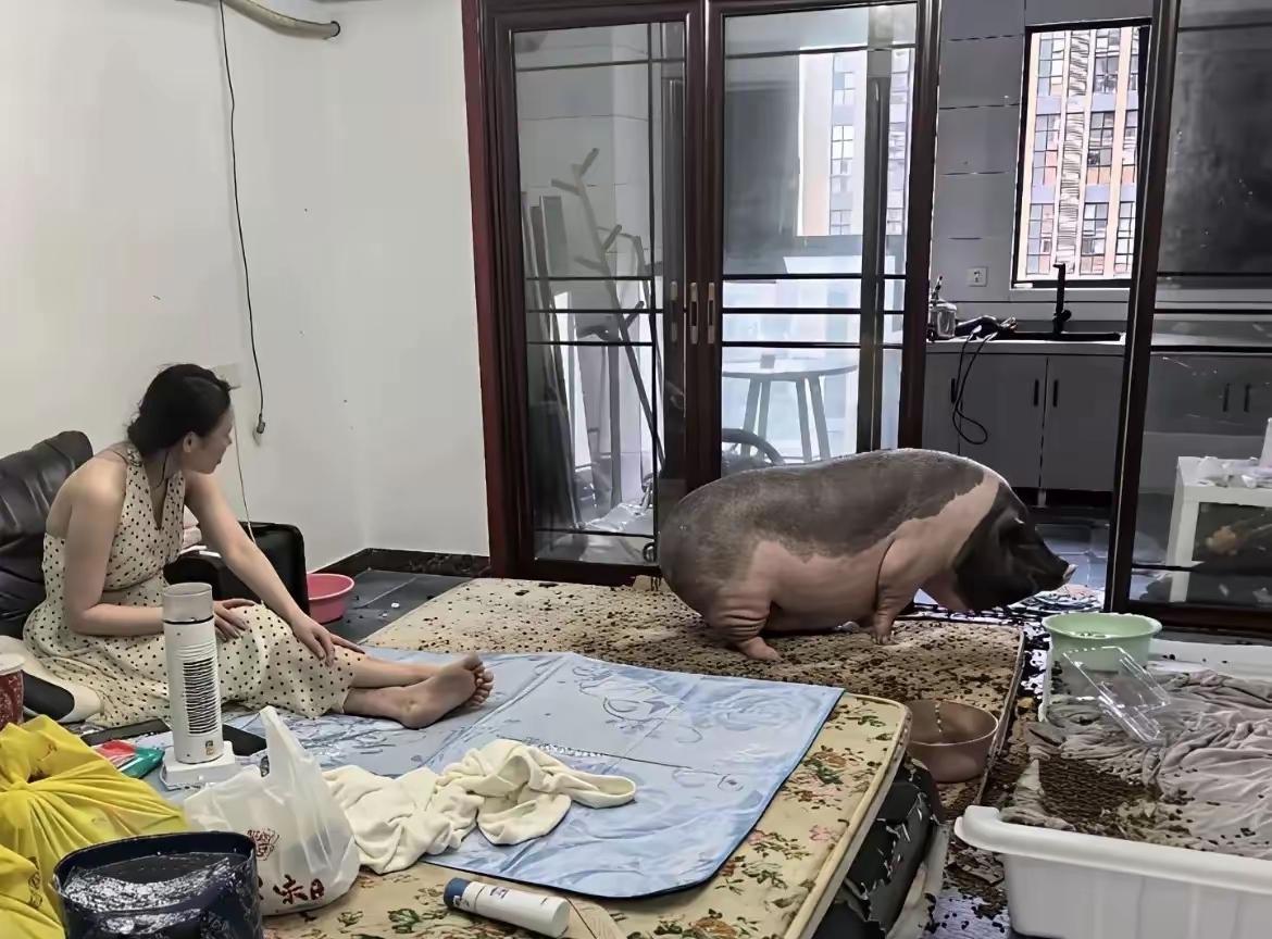 女子网购了一只小宠物猪,它给小猪买了很多食物,每天都精心的喂养着它,小猪很听话,不但不挑食,还学会了自己上厕所,更令人惊叹的是它还会向主人撒娇,每次看到小猪憨态可掬的样子,都逗得女子开心的笑起来,生活的烦恼一下子都没了。 可是慢慢的女子发现一个很大的问题,就是这只小猪食量特别大,吃完就睡,长的特别快,一年时间体重都快200斤了。这哪还有宠物猪的样子了,小猪行动非常吃力,尽管女子在客厅给它开辟了一个活动空间,但它还是很懒,不喜欢锻炼身体,体重还是在增长,朋友们都开玩笑的对女子说:“过年的时候,正好不用买猪肉了!”可是女子已经和小猪有感情了,根本就不舍得吃它的肉,但是这家里都快被它变成猪圈了,眼看着小猪越来越大,真是愁坏女子了,大家认为该怎样处理这只可爱又越来越大的小猪呢?