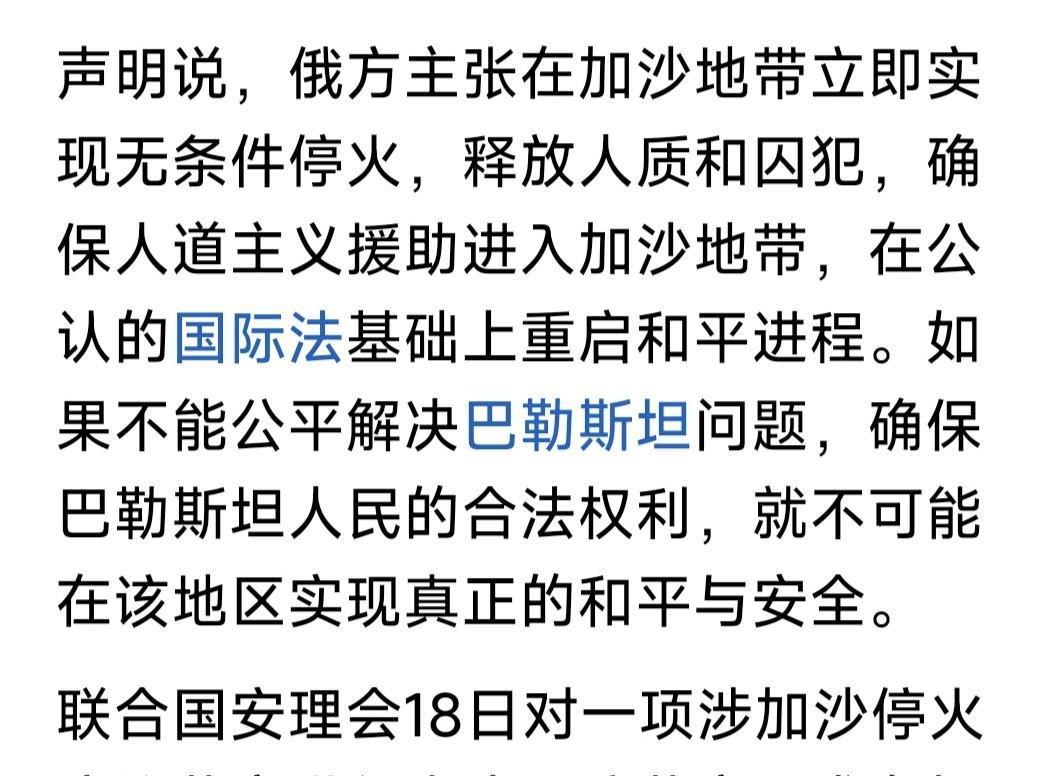 极具讽刺!俄谴责美国否决安理会阻止加沙大屠杀决议,令人失望和遗憾! 网曝9月18日,联合国安理会投票表决一项决议:立即在加沙无条件停火,无条件释放所有被扣押人员,以色列无条件解除对加沙人道援助的种种限制! 安理会5个常任理事国,与10个非常任理事国,对此决议进行表决。结果14票赞同通过,但被美国代表一票否决。 各国代表对美国的恣意妄为,纷纷予以指责。提案发起国之一的阿尔及利亚代表,向加沙难民连续表示11次道歉! 苍狼不知该说什么?感觉加沙局势确实堪忧。但这个决议是否公允?为何不谴责哈马斯?没有哈恐10.7恐袭,以色列会进攻加沙吗?哈马斯为何不全部释放人质?不服从“纽约宣言”解散武装? 哈马斯是导致以哈冲突,加沙灾难的罪魁。在以军持续打击下濒临崩溃,现在龟缩在加沙城做最后挣扎。以色列岂能放过铲除哈恐,实现和平最好机会? 现在以色列决心已下,还有美国全力支持!必欲彻底铲除哈马斯,然后才是解决200万难民问题!这个顺序无人能够阻挡。安理会此时推出决议是何意?有什么鸟用?另外俄乌战争怎么解决? …………