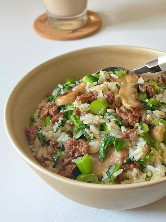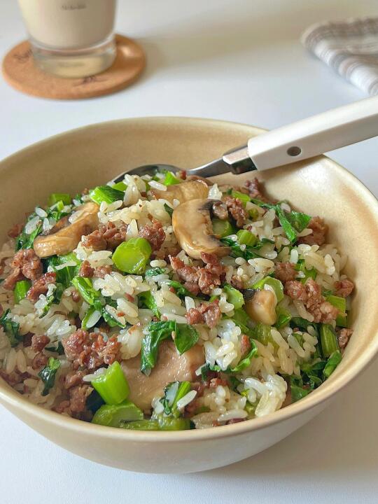 近期心头好🥬夏天超爱🧃菜心口蘑牛肉炒饭🍚