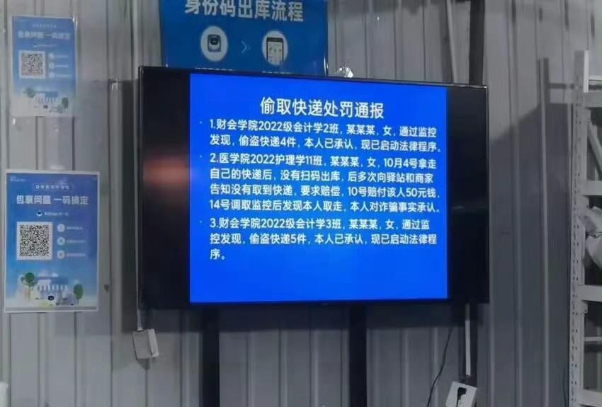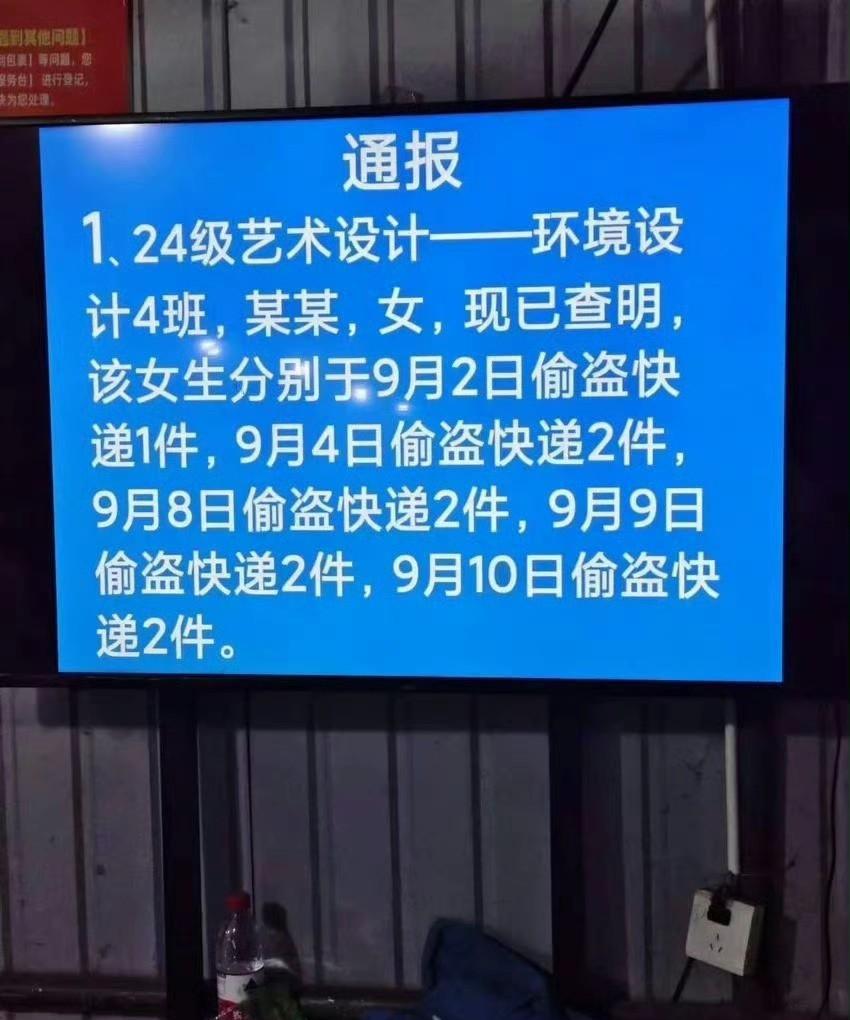 某学校公布的公开姓名,警告学生偷快递行为,很多人认为有快递不算偷,因为大部分快递案值的确很小,平均只有几十块,最多几百块左右,但是哪怕没有到立案的标准,也的确违法了,轻则可以由公安机关训戒,如果长期盗窃快递案值达到几千块,那么完全可能立案侦查,就不仅仅是违法行为,上升到犯罪行为了。 因为几个快递把自己后半辈子平白搭进去,你认为值得还是不值得?大学生应该有正确的三观,行为不仅仅因为欲望。我不知道家里人知道孩子在学校偷快递到底会怎么想?花了十几年时间,一家人无数的精力,进入大学后竟然做出这种事情?