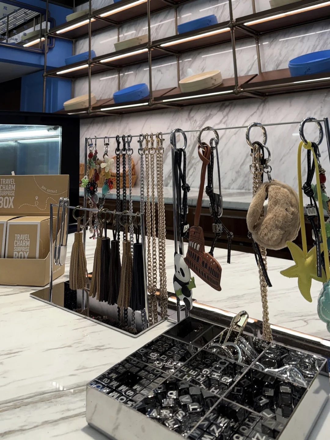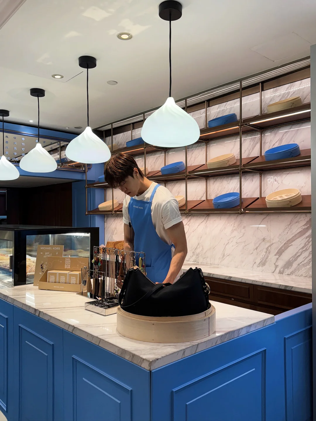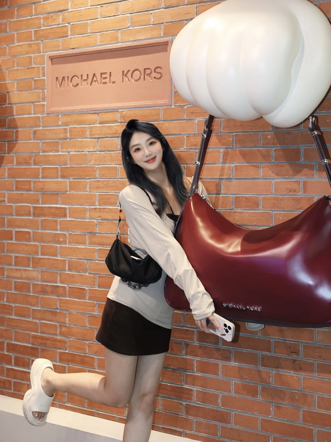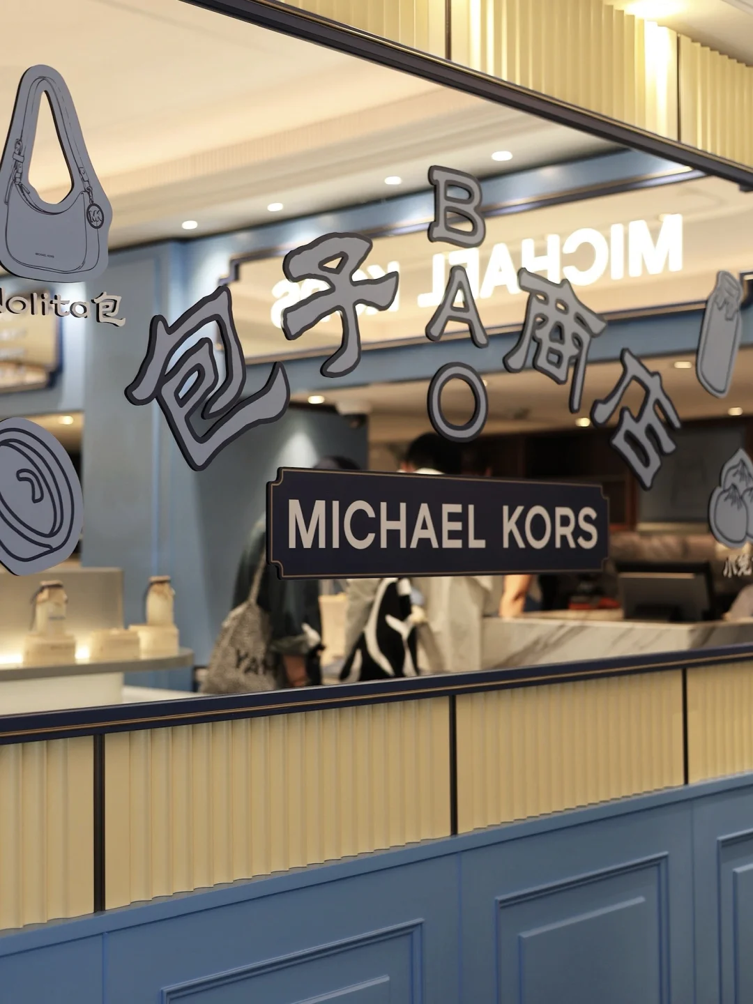 ✨MK的快闪店除了卖“包子”之外当然也会卖包包!Nolita包包摆了满满一墙,颜色挺多的,都蛮好看~牛巴革材质软乎乎,上身试了一下,可以调节的简单对小个子女生很友好,容量也挺大的,超实用~