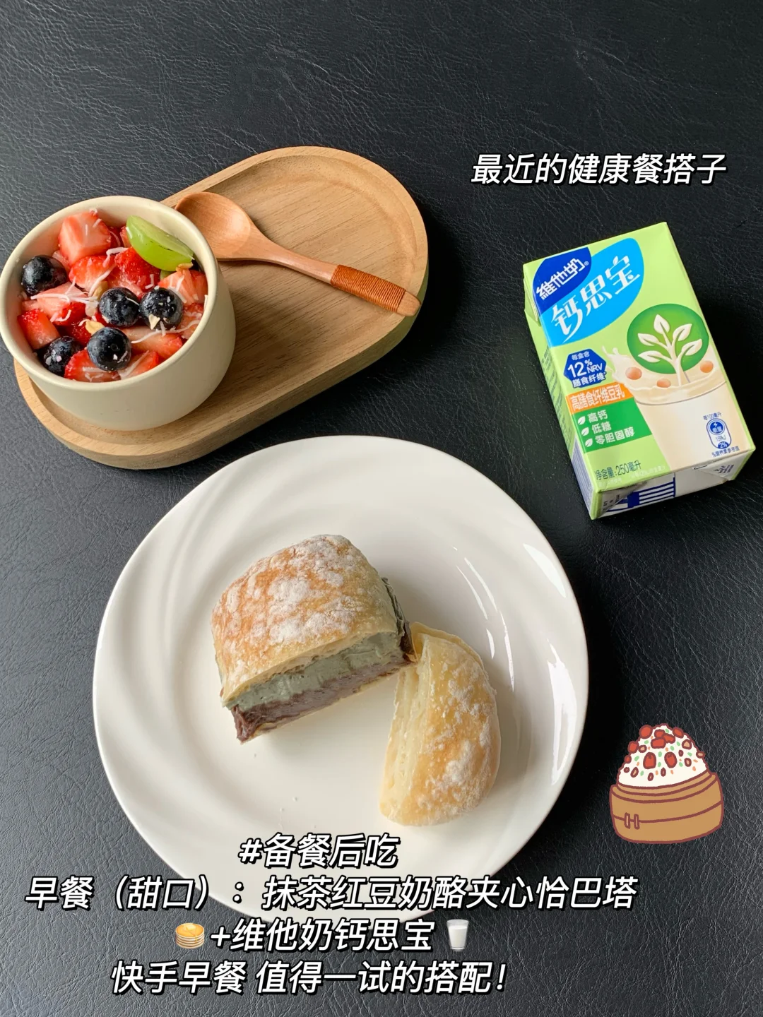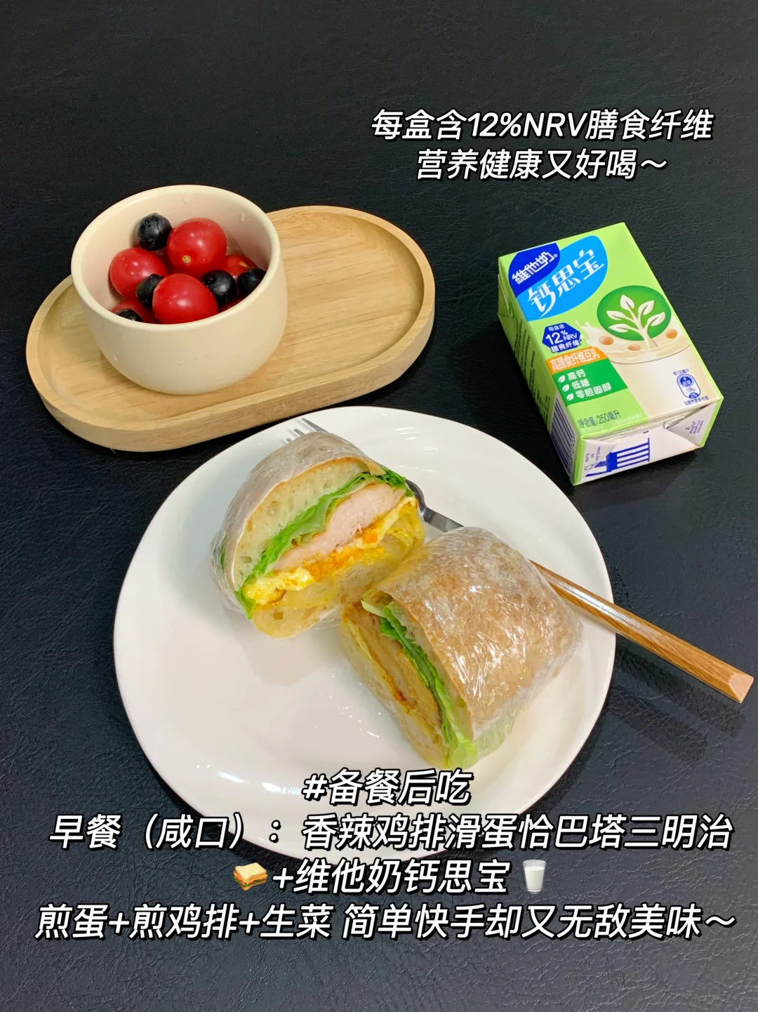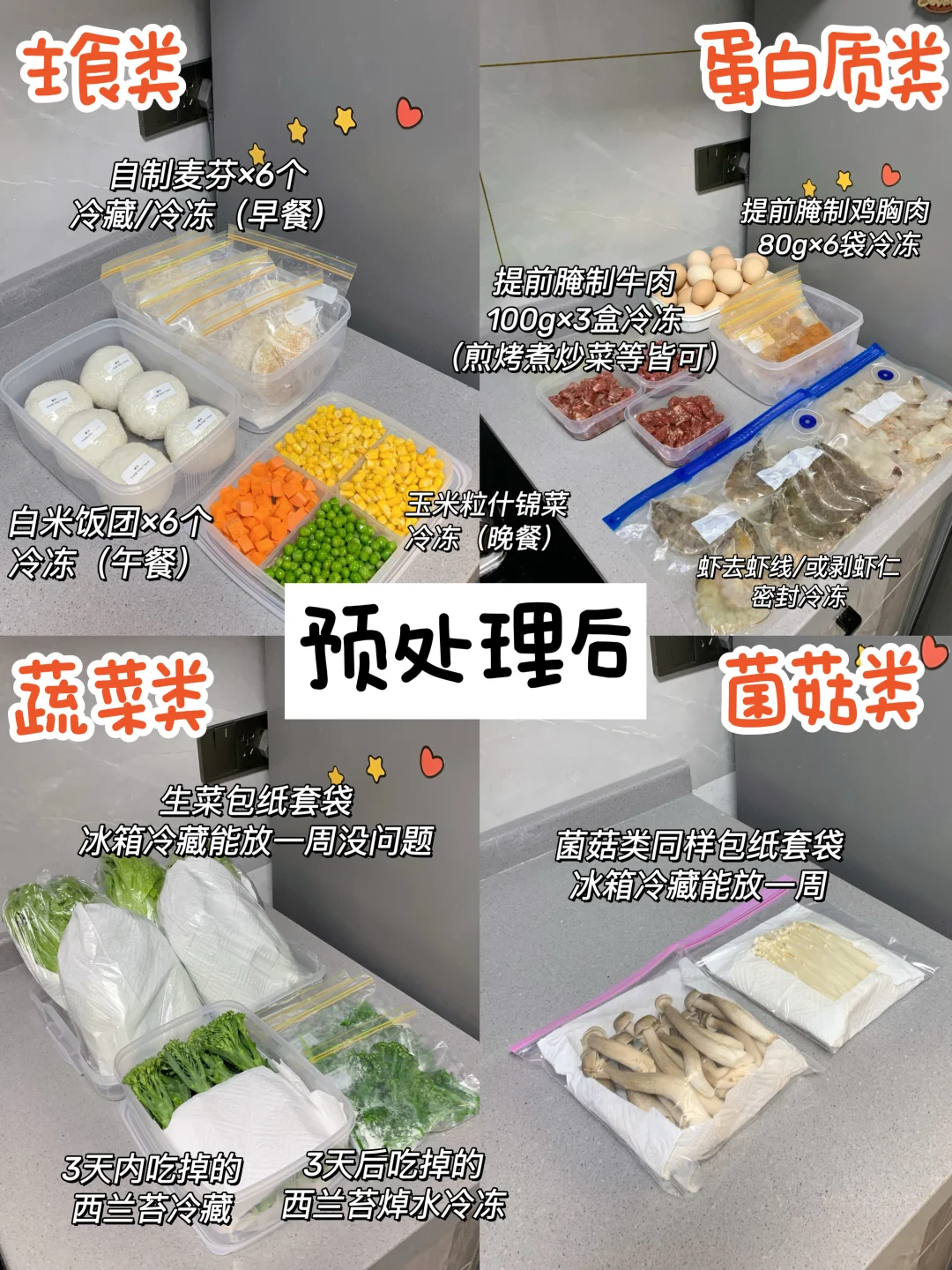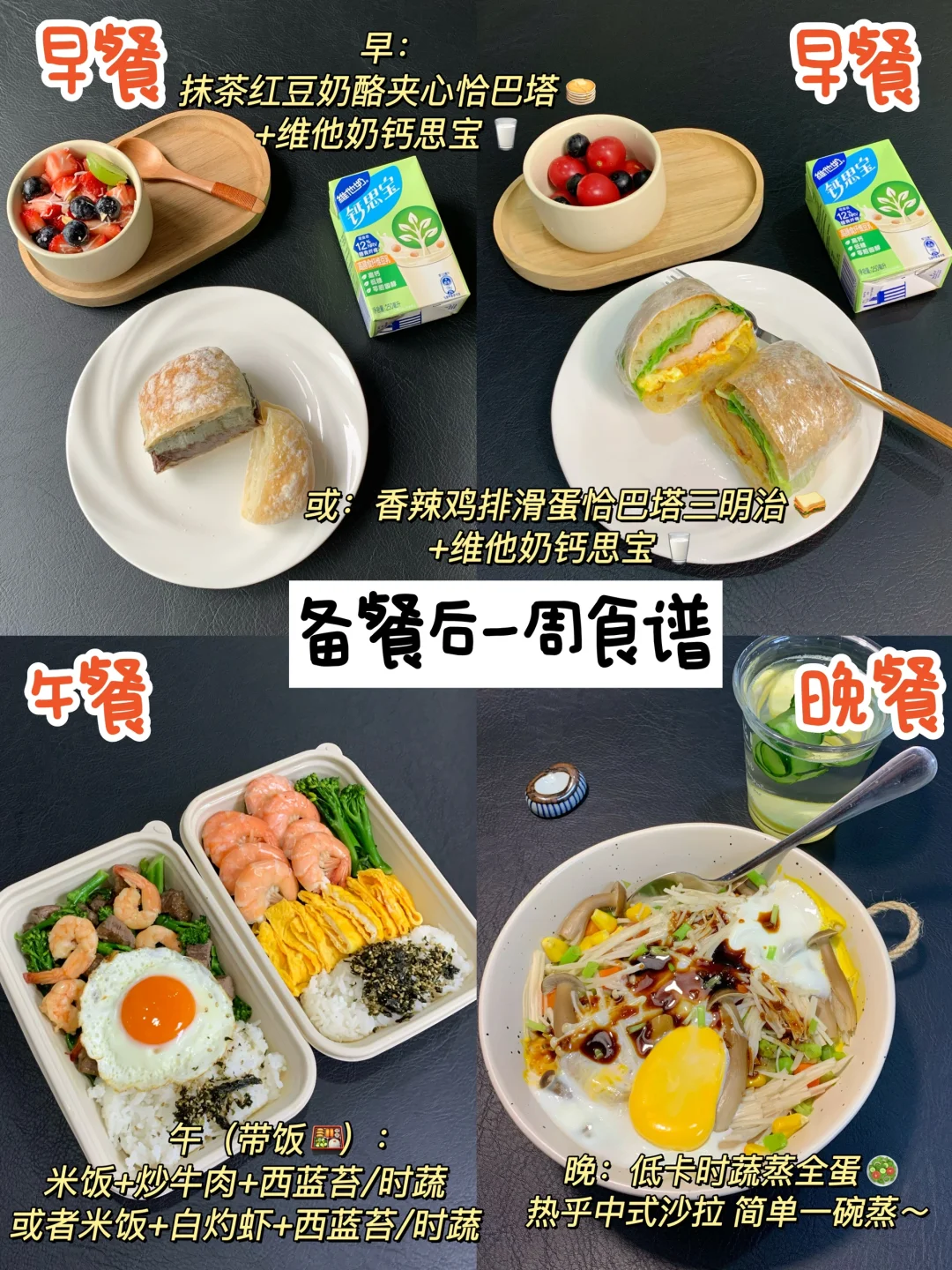 周末两小时,轻松一星期~上班族必看! 如何10分钟快速吃上饭!超全版打工人一周生活化✂️🥩餐备餐!! 这个周的备餐实测简单又好吃,而且蛋白质、碳水、蔬菜都有,不知道吃什么的宝子可以直接抄作业! - 💕备餐步骤(新手懒人可行版) 1️⃣主食类: 米饭煮熟分装100g-150g一份冷藏/冷冻 自制恰巴塔烤熟分装冷藏3天/冷冻永恒 玉米粒胡萝卜青豆等混合冷冻(冷冻随取随吃超省心) 2️⃣蛋白质类: 鸡肉/牛肉切好腌制分装80g-150g一袋分装冷冻(煎/烤/炒/煮/拌都嫩都好吃) 虾去虾线/剥虾仁密封冷冻(分装一顿的量 随吃随用) 3️⃣蔬菜类: 生菜根部插牙签冷藏、西蓝苔3天内吃的冷藏 西蓝苔3天后吃的焯水冷冻(方便省事不怕黄) - 🔅一周轻食食谱 早餐:恰巴塔🥞+维他奶钙思宝🥛 (恰巴塔多种口味随意搭配、咸甜干吃皆可~) 午餐:米饭+小炒牛肉🥩+蒜蓉西兰苔/时蔬🥦 或米饭+白灼虾🦐+清炒西兰苔/时蔬🥬 晚餐:低卡时蔬蒸全蛋🥗 - 维他奶钙思宝高膳食纤维豆奶是我近期早餐必备! 每盒膳食纤维达12%NRV,约等于一小碗蔬菜🥗 早餐配上一盒,帮我轻松实现营养均衡! 而且它低糖0胆固醇,热量低,喝着完全没负担~ 每盒快速补营养,好喝又健康,简直是自律轻食的宝藏好物。 有时候来不及好好吃东西,就会揣上一盒,既能在管理身材期间给自己补充营养,还能享受美味[喝奶茶R]控卡好喝两不误~~ - ⚠️ 关键执行Tips 1️⃣ 每日喝够2L水(大杯子吨吨吨喝水快) 2️⃣ 晚上23点前睡觉,保证7h+睡眠,不要熬夜! 3️⃣ 戒外卖夜宵,可以偶尔吃,大部分时间自己备餐吃干净食物! 4️⃣ 爬坡爬楼梯真的很有用,肚子小了一圈,推荐一周2-3次+一起加油互相监督