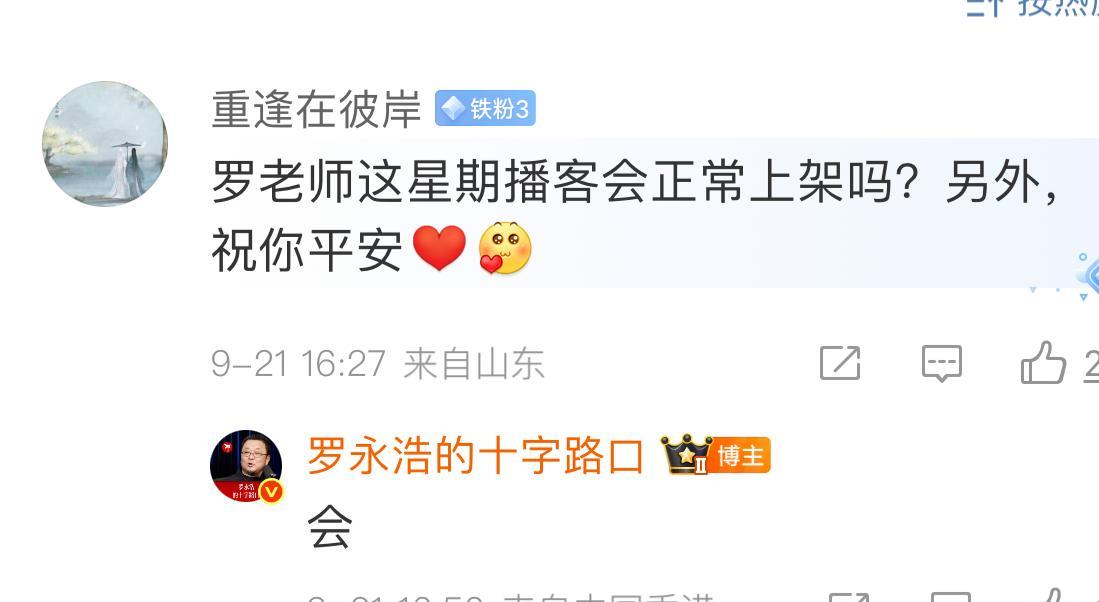 罗永浩现在保持日更一条的频率! 9月21日,罗永浩发布博文,有网友留言:“这星期