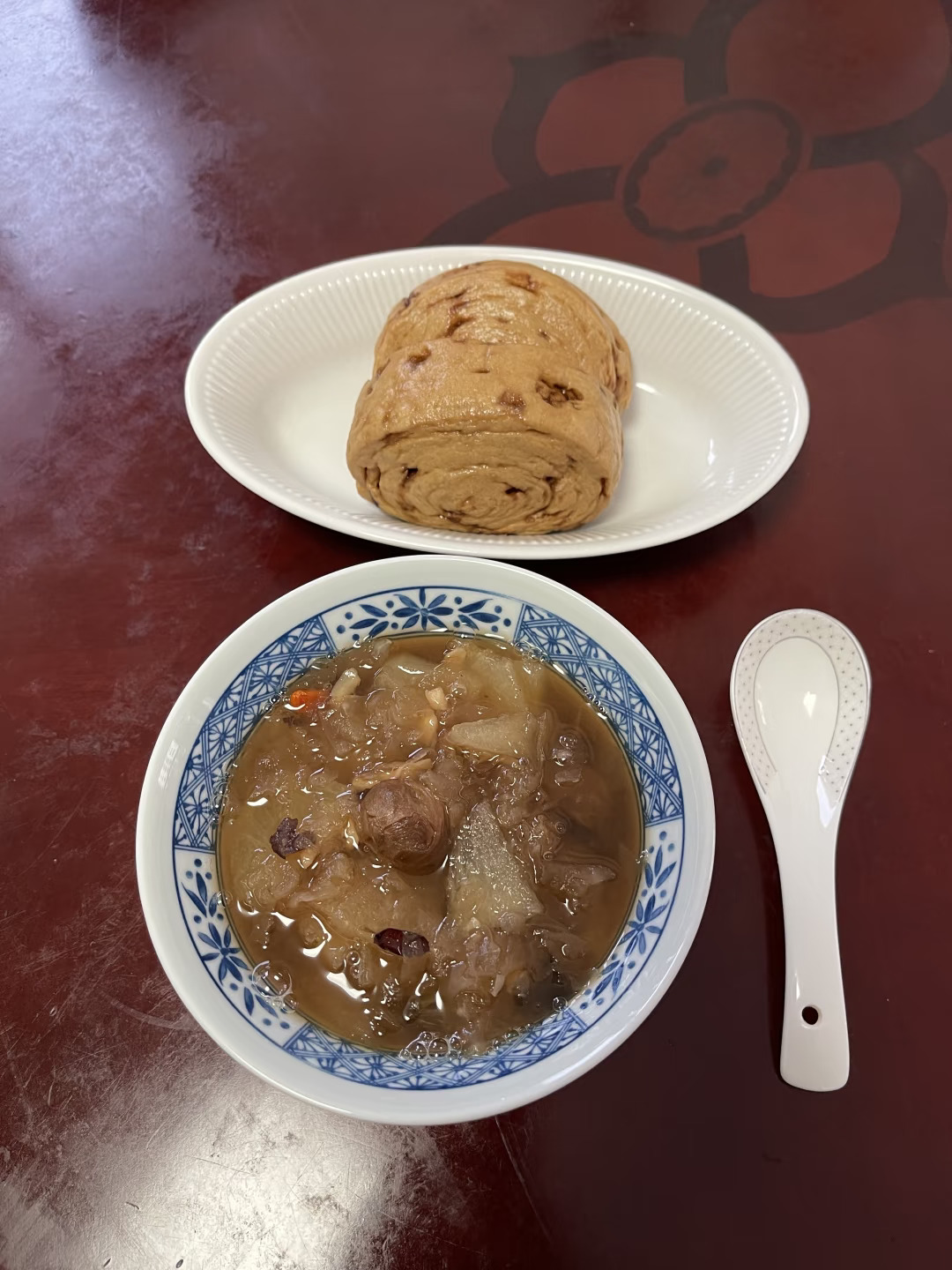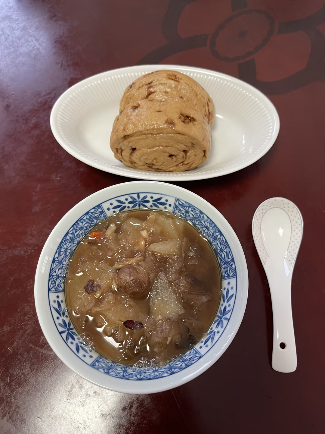 嗨👋互联网闺蜜们 我是热爱食养文化的樂妈👩 自学《黄帝内经》 挑战和宝宝一起中医食养好月卑胃100天打卡✅ 🥣雪梨银耳百合羹➕红糖馒头 今日状态✅ 🟢胃:胀气 🟡脾:虚 运动:散步➕瑜伽🧘♀️ 我好像悟到了银耳出胶秘诀[偷笑R][偷笑R]