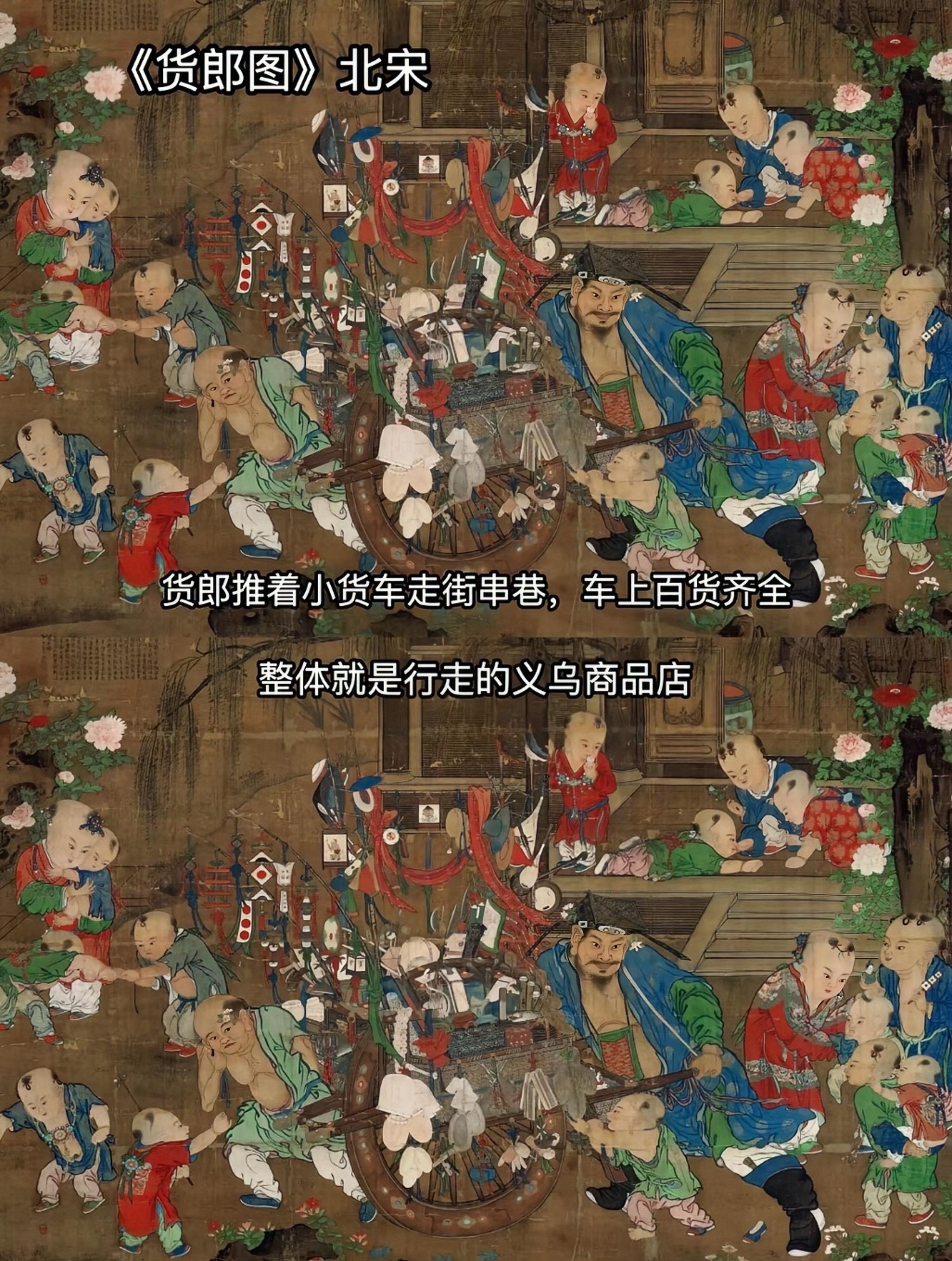 古代移动商铺,画中老祖宗玩具似曾相识,其实古人的生活并不落后