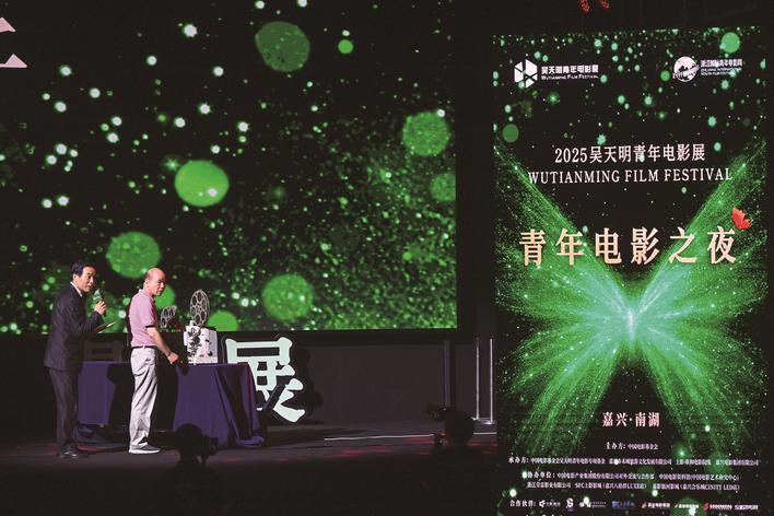 近日,吴天明青年电影展在嘉兴南湖圆满落幕。本届影展聚焦“首作”,通过展映、推选、对话三大核心板块,为青年导演搭建舞台。闭幕式上,观众评审荣誉与专业评审荣誉揭晓,多部优秀影片及影人获表彰。致敬环节中,海宁许村电影放映员徐九斤先生因41年放映3万多场电影、守护时代记忆,收获全场观众的掌声。本次电影展为嘉兴观众带来了丰富的观影体验,推动青年电影发展,为电影文化繁荣添彩。N记者徐志达摄