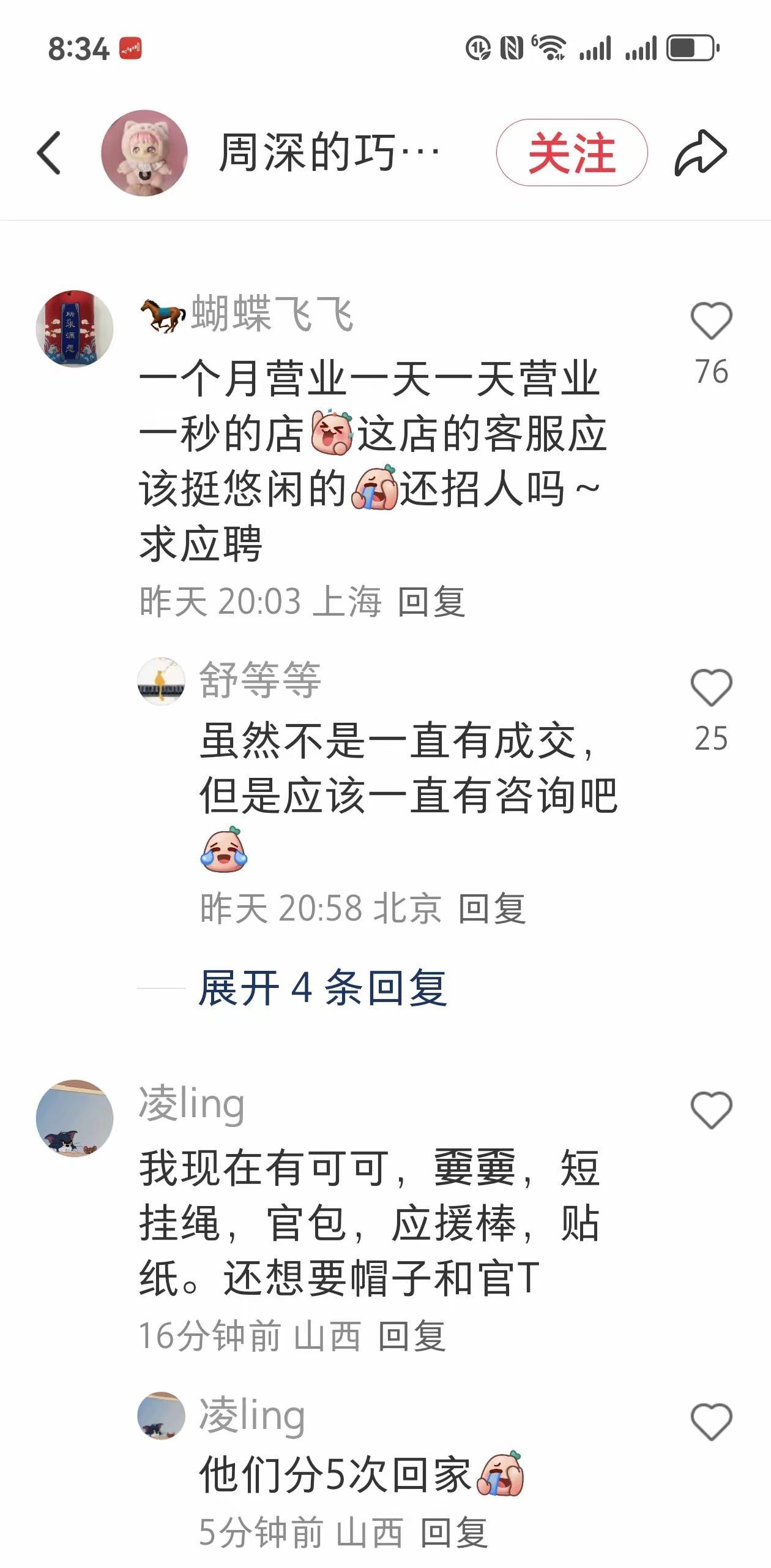 萱妞:可可嫑嫑,你们知道大家是怎么调侃你们开的店的吗?[微笑] 周嫑嫑:调侃?[