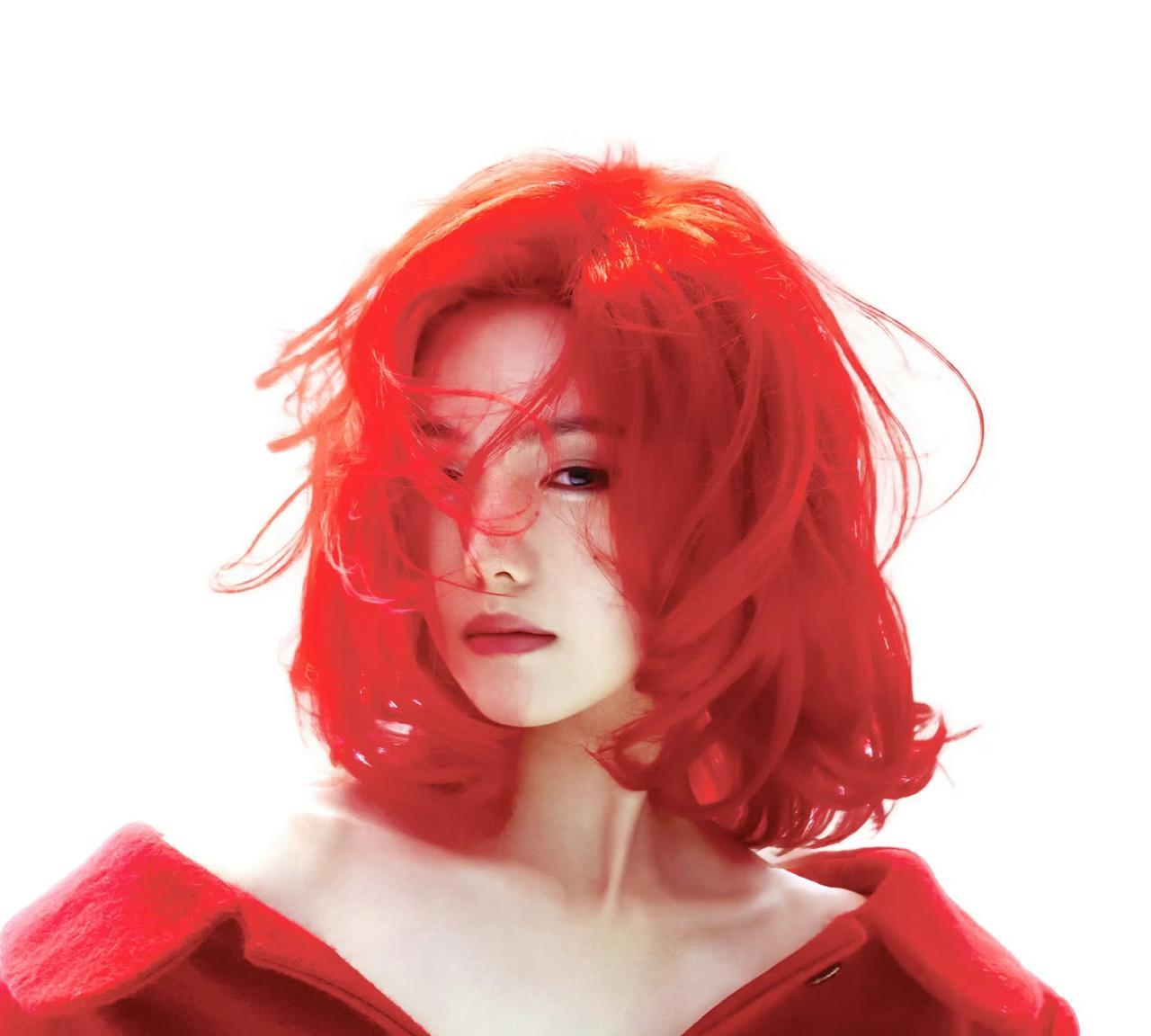 刘浩存以亮眼红发亮相《V中文版》2025年10月刊封面预告,搭配红色短发与Miu