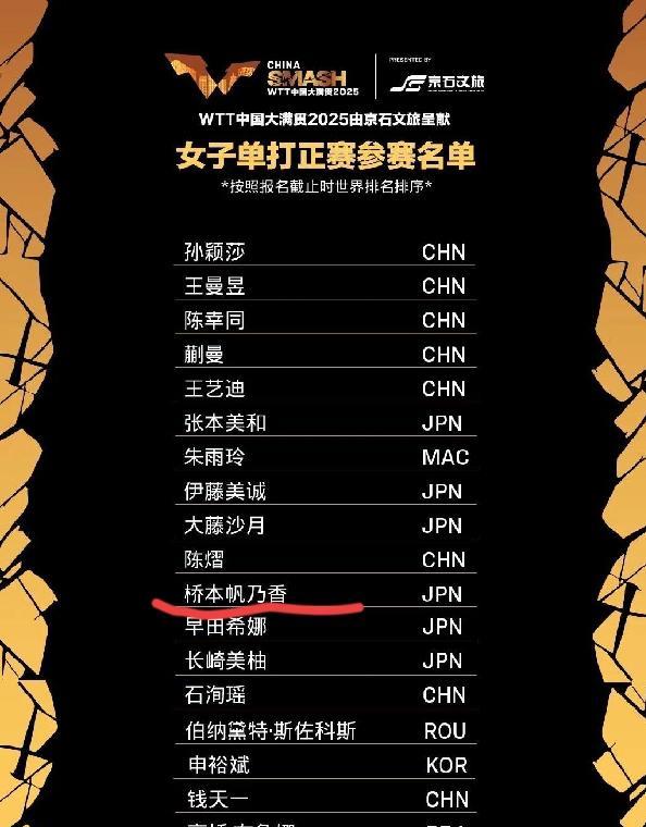 桥本帆乃香确认参赛,对国乒女单压力很大。 抽签无非就是上下半区,上半区孙颖莎打有