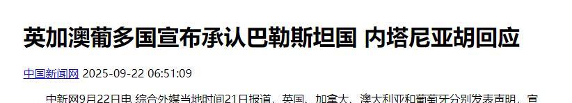 西方掀起承认巴勒斯坦国风潮,内塔尼亚胡放话威胁:你们等着瞧!以色列的行动愈发肆无忌惮,一些西方国家也终于不再装聋作哑。 这阵子以色列在加沙地带的动作越来越没谱,轰炸平民区、切断水电粮道,把人道主义红线踩得稀碎。 之前还硬把巴勒斯坦问题从“国家主权争端”扭曲成“人道主义救援”,试图用物资援助掩盖自己的军事扩张,这下连一向跟美国站一队的西方国家都看不下去了。 9月21号那天,英国、加拿大、澳大利亚、葡萄牙直接跳出来,公开宣布承认巴勒斯坦国的主权地位,紧接着又有消息说,联大开会期间法国、卢森堡这些国家也要跟着表态。 要知道现在联合国193个成员国里,原本就有不少认可巴勒斯坦的,这么一来,承认的国家就得奔着159个去了,这对一直把“巴勒斯坦建国”视为眼中钉的以色列来说,简直是外交上的当头一棒。 可内塔尼亚胡倒好,非但没收敛,反而录了段视频放狠话,说“巴勒斯坦国绝不可能存在”,还放话不会让巴勒斯坦在约旦河西岸建国,甚至要让当地的犹太人定居点数量翻倍,最后还对着那些承认巴勒斯坦的国家撂下一句“你们等着瞧”。 这话听着挺横,可明眼人都能看出来,他这是慌了——以前有美国撑腰,以色列在国际上再怎么折腾,西方国家大多睁一只眼闭一只眼,可现在连英、加这些美国的“铁杆盟友”都倒戈,他能不着急吗? 其实西方国家这次集体表态,背后的心思也挺清楚。一方面是国内民众的压力实在扛不住了,加沙每天传来的伤亡数字、儿童在废墟里哭泣的画面,让不少国家的老百姓上街抗议,要求政府不再包庇以色列; 另一方面,美国一直无条件给以色列军援,甚至否决联合国的停火决议,这种“偏科”的做法让其他西方国家也觉得尴尬,毕竟谁也不想跟一个被骂“支持种族灭绝”的国家绑太紧。 他们想通过承认巴勒斯坦国,既给国内民众一个交代,也变相给以色列和美国敲敲警钟:别太过分,国际社会的耐心是有限的。 不过话说回来,这种“承认”现在更像是一种“道德表态”,实际能帮到巴勒斯坦的地方真不多。 你看内塔尼亚胡压根没把这当回事,该建定居点还建,该封锁加沙还封锁,毕竟以色列手里有美国给的先进武器,有实实在在的军事优势。 而巴勒斯坦连个完整的政府架构都还没理顺,哈马斯和法塔赫之间还有分歧,就算多了几十个国家承认,短期内也没法改变被压制的局面。 更让人担心的是,以色列说不定会因为这波“承认潮”变本加厉,借着美国给的军援,加快瓦解巴勒斯坦权力机构,把约旦河西岸拆分成小块控制,到时候就算国际社会承认巴勒斯坦国,也可能变成“有名无实”的空壳子。 说到底,要解决巴以问题,光靠西方国家口头承认远远不够。得有真正能制约以色列的力量站出来,逼它停火,逼它放弃定居点,回到“两国方案”的谈判桌前。