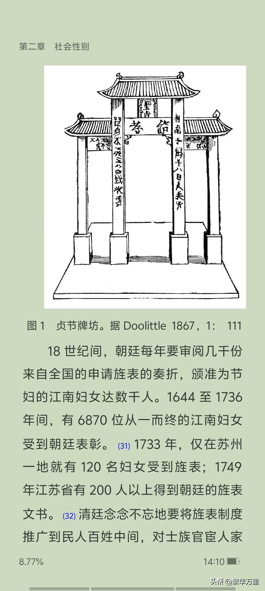 最近,读了一系列关于中国女性地位变化的书。 从隋唐时代的洒脱奔放,到了两宋时代,明显开始拐了S弯,一步步沉沦。缠足三寸金莲、三从四德、贞节牌坊、自杀殉夫、七出之条……呸!15岁殉夫、守节75年,封建礼教,流毒深重。 清末女子学堂、辛亥、五四、新青年、新文化运动、教员出山,又历经了一个缓慢、艰难的爬升过程。最终,妇女能顶半边天。