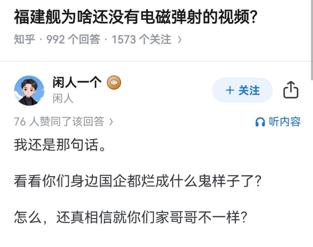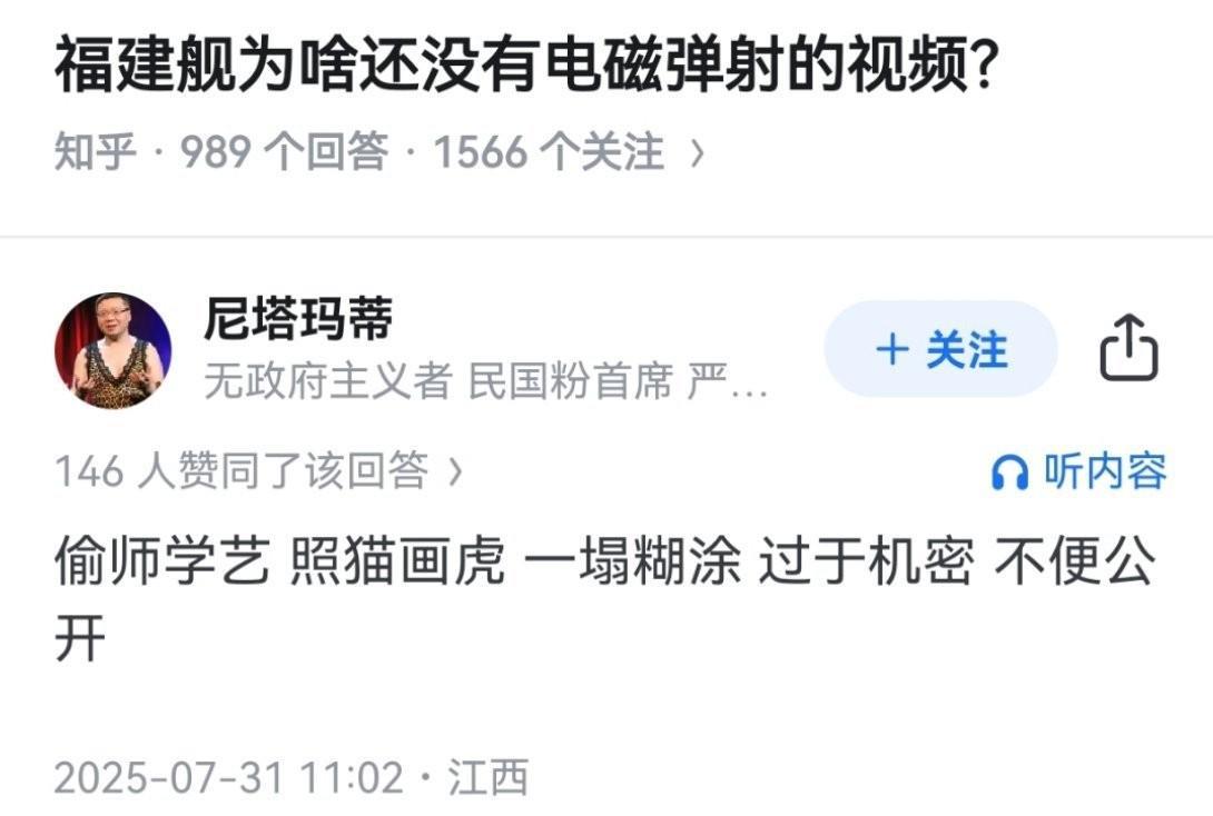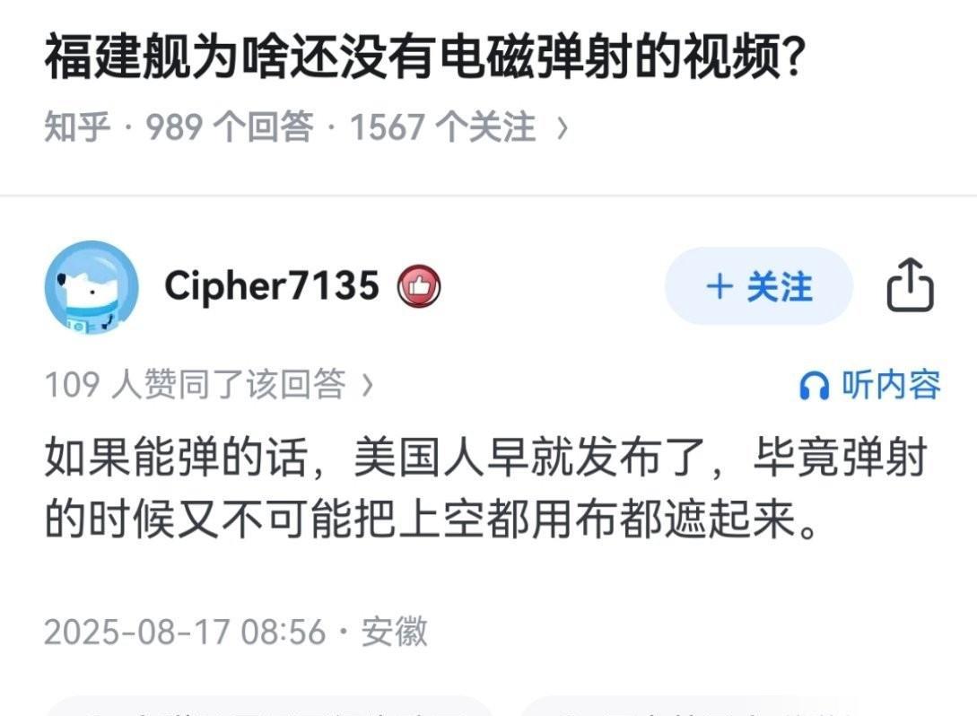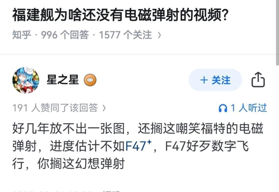 互联网考古!当初在网上拉踩的这帮人请你们出来看看啥叫电磁弹射!还有那位说要吃翔的人! 当初你们说的那真是“愤世嫉俗”啊!今天这算是给你们一个个耳光了!以后麻烦你们,不要“鼠目寸光”,不要做“井底之蛙”。 尤其是那位声称要吃翔的博主,直播的时候麻烦你通知一声,好让大家都来看看你的“尊容”。