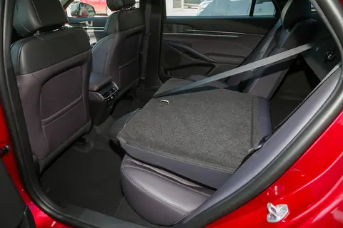 在空间表现上,至尊型同样令人满意。车身尺寸为4935mm×1875mm×1500mm,轴距达到2945mm,营造出宽敞的车内空间。以一位身高180cm的体验者为例,前排座椅调整到合适位置后,头部空间约有一拳的余量,腿部空间非常充裕;在后排,腿部空间仍能保持两拳左右的距离,膝盖前方没有任何局促感。后排中央地台较为平坦,三人乘坐时中间乘客也不会感到明显的不适。此外,520L的后备箱容积能够轻松应对日常出行需求,无论是装载行李还是大件物品,都显得游刃有余。更值得一提的是,其二排座椅支持40:60比例放倒,若有更大储物需求,放平座椅后可进一步拓展空间,实用性相当不错。