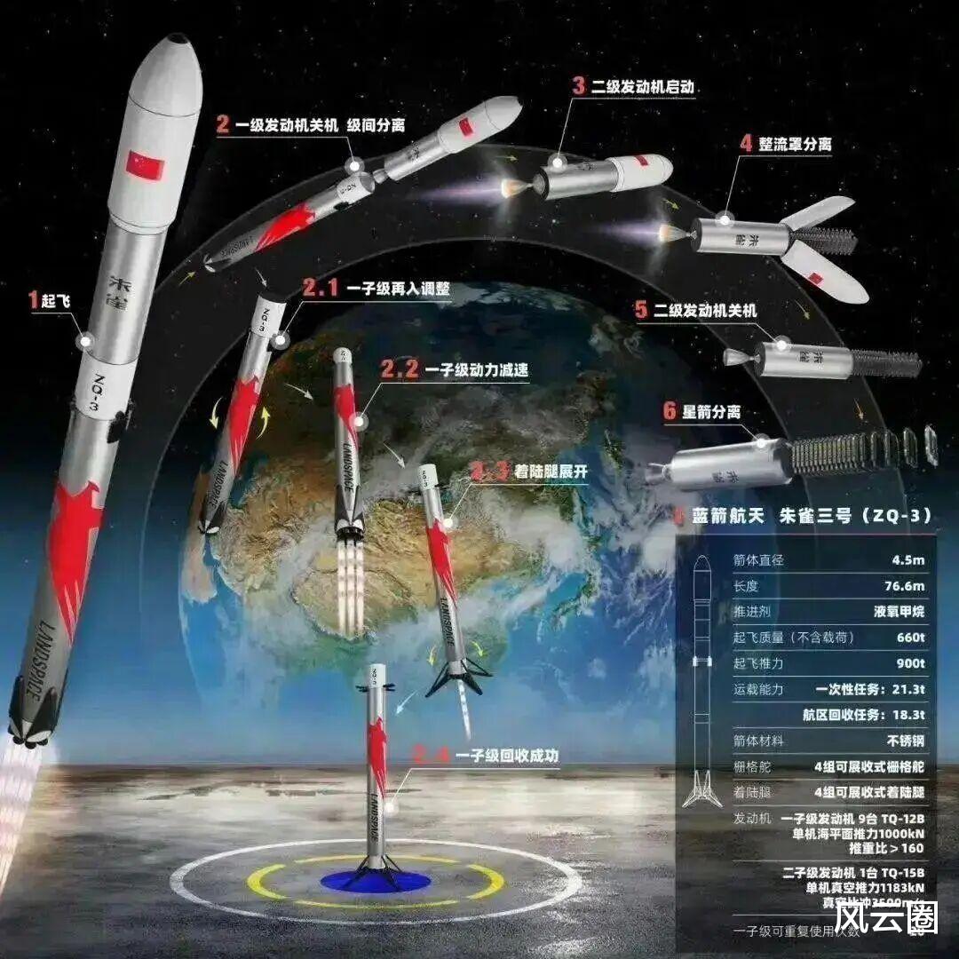 这次朱雀三号要办的事,在中国是头一次。所以慎重点是应该的。并且它不是普通的一次性火箭发射,是要做入轨,然后一子级垂直回收,这一点就像是马斯克的SpaceX猎鹰9号在做的事。不但载荷要稳稳地送进轨道,还得让第一级火箭稳稳地落回地面,重复使用准备下一次飞行。