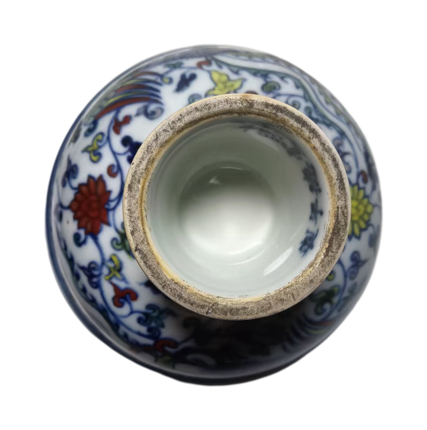 (二)鉴定核心:真迹与仿品的技术密码1. 真迹特征釉彩:青花浓艳带铁锈斑(苏麻离青特征),釉面有自然 “橘皮纹”;五彩设色层次丰富,红彩鲜艳、黄彩娇嫩、绿彩明快,彩料有 “蛤蜊光”(长期氧化形成的七彩光泽);