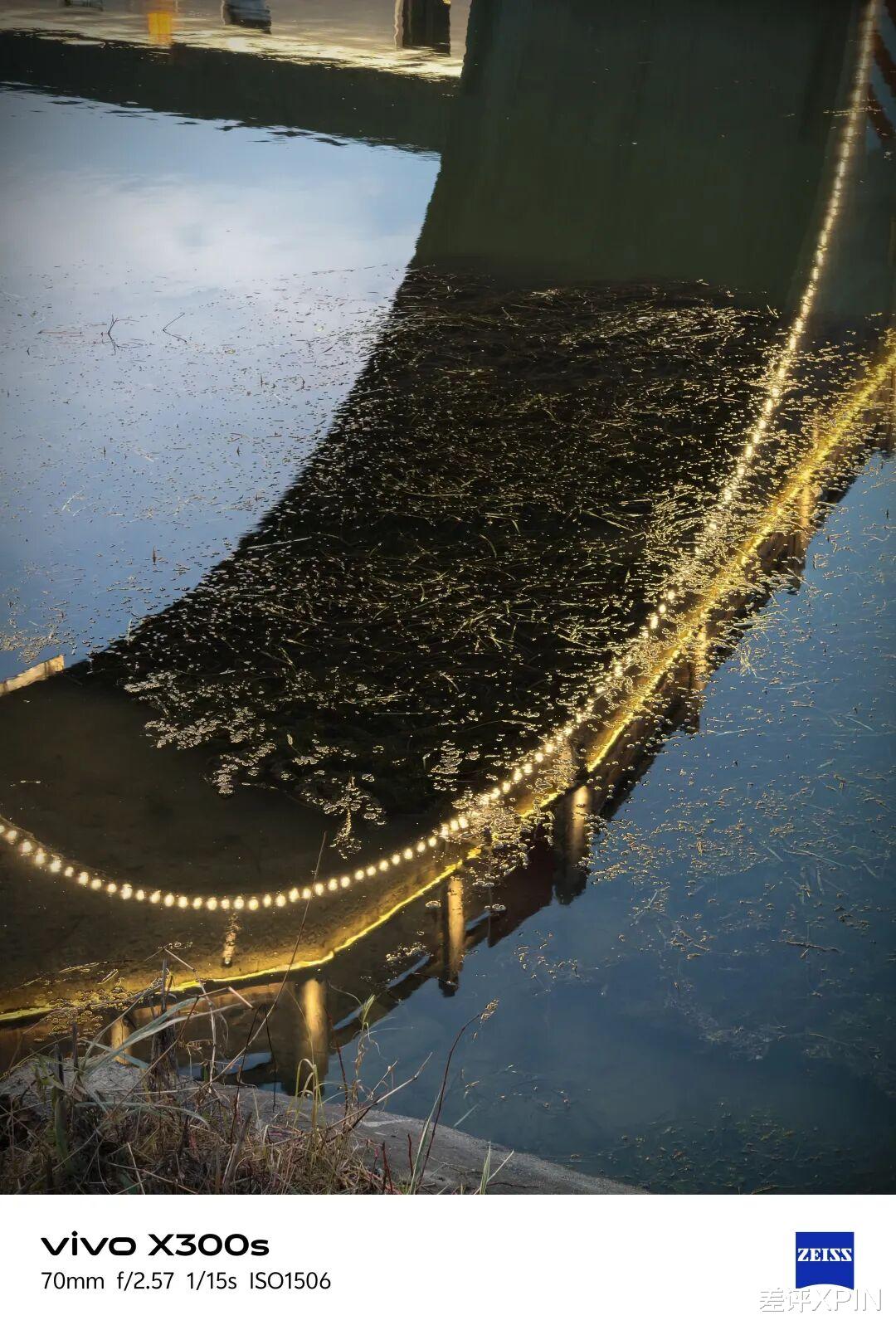 当时拍这张水中倒影的时候真的是把我惊到了,水上有浮萍,水面会有波纹,与此同时水面还要倒映桥上的灯光。