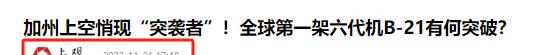 信息来源:上观新闻2023-11-21 加州上空悄现“突袭者”!全球第一架六代机B-21有何突破?