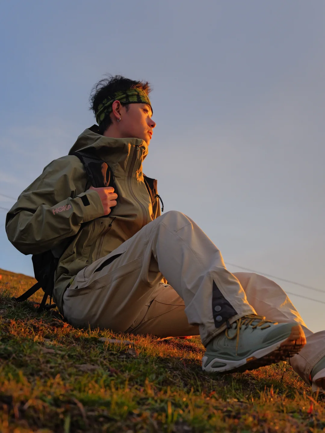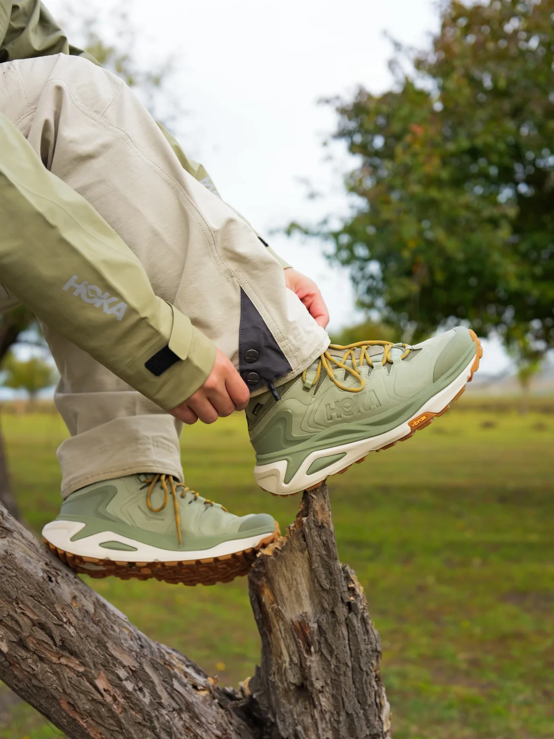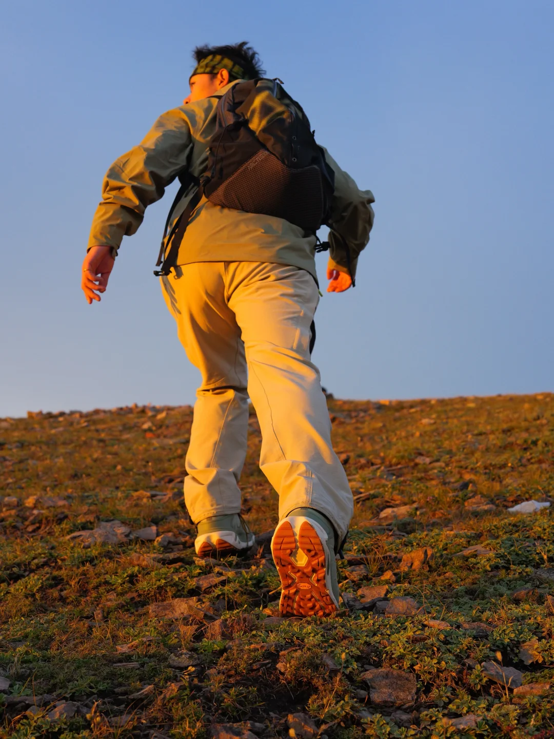 脚上的KAHA 3 GTX稳健地踏过潮湿的草甸