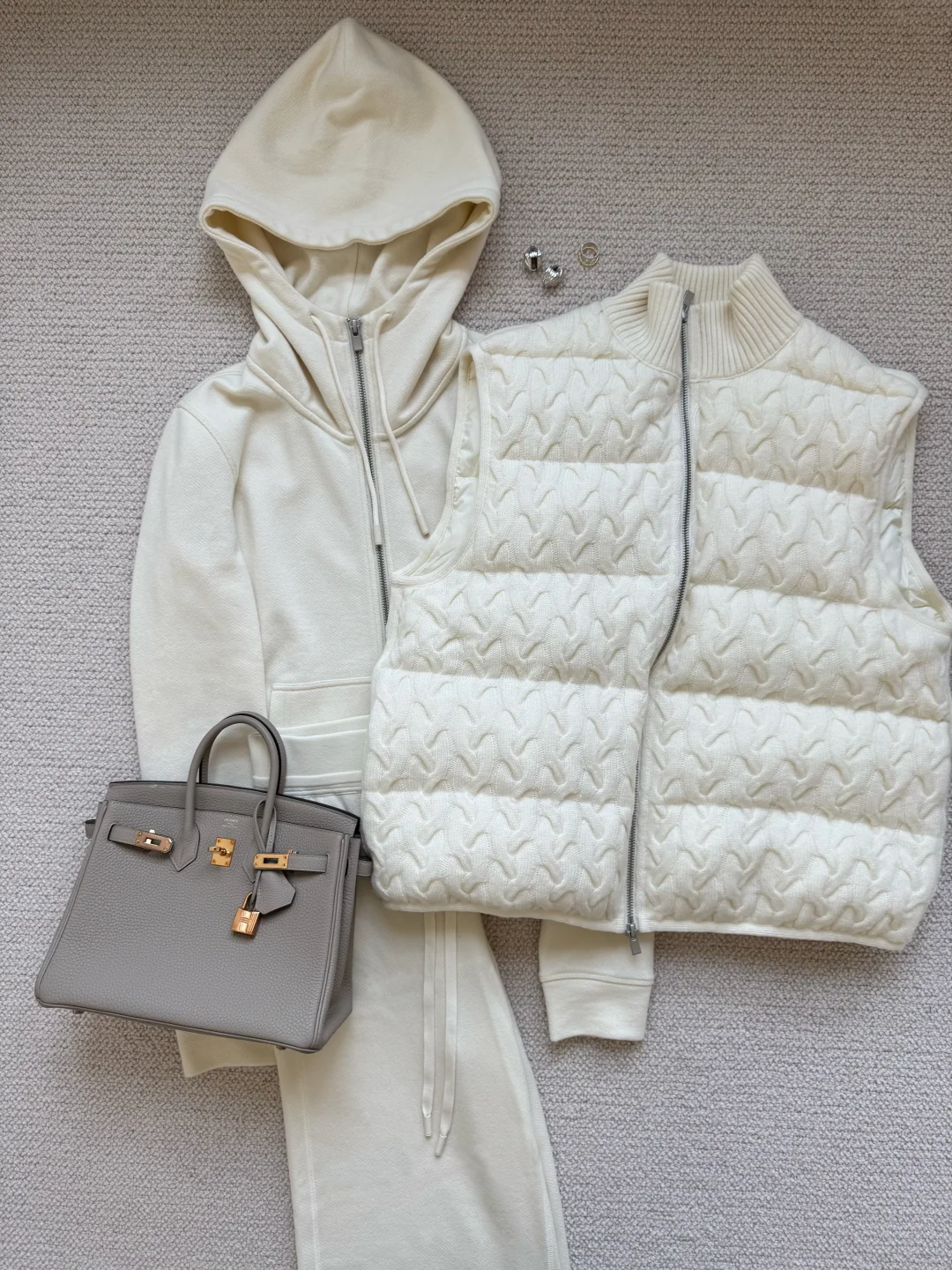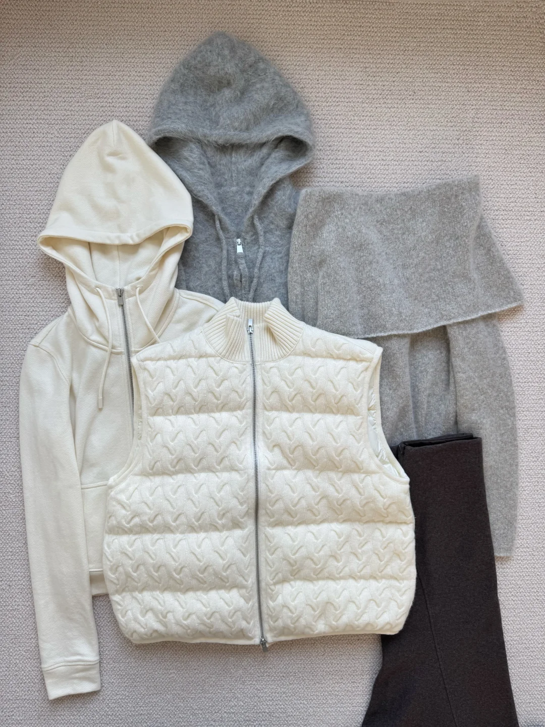 雨后放晴,状态就回来了 这期是我喜欢的宽松式穿搭 轻松好搭配的灰白色系 柔软的羊绒毛衣、低调松弛的羊驼毛外套 还有很别致的针织羽绒马甲 都是秋冬不可错过的质感单品 时髦又保暖且没有什么束缚感 自在的平衡从容与忙碌~