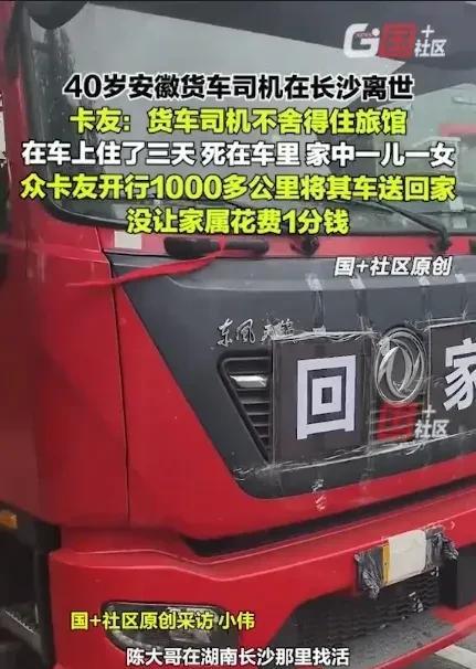 “痛心!”2025年9月,安徽40岁卡车司机在长沙等活,为了省点钱,他一直睡在车里,卖饭的商贩见他迟迟不下车,就打开车门看了一下,结果发现人已经死了。河南几名陌生“卡友”接到家属求助后,立即前往长沙,全程费用自掏腰包,将车开了回来。 40岁啊,正是家里扛事儿的年纪,上有老要赡养,下有小要拉扯,按理说每一步都得走得稳当,结果就为了省那几十块、一百来块的住宿费,把命留在了驾驶室里。 想想都觉得揪心——他蜷缩在车里的时候,会不会还在盘算:今天没接到活,省一晚住宿费,就能多给家里寄点钱;孩子的辅导费快交了,父母的降压药也该买了。 在他眼里,那点住宿开销哪是“钱”,分明是家里的柴米油盐、亲人的期盼,所以哪怕车里又闷又窄,哪怕可能有风险,他也觉得“能省就省”。 那个卖饭的商贩也挺实在,没因为这司机总不下车买饭就不管不顾,反而主动去开车门看看情况。这要是换个冷淡点的,可能会想“这人不爱说话,别打扰他”,或者“是不是不想买饭,装睡呢”,也就错过了最早发现异常的机会。 偏偏是这份普通人的“多一句嘴、多一眼看”,成了给家属的最后一点慰藉——至少没让他就这么悄无声息地待着,至少能让家人早点知道消息,少点煎熬。 再说说河南那几个陌生卡友,这事最让人暖的就是这儿。素未谋面,就因为一句“家属求助”,立马收拾东西往长沙跑,油钱、过路费、吃饭住宿的钱全自己掏,就为了把死者的车开回来。 他们图啥啊?不图名不图利,就因为都扛过“卡车司机”这身份,都懂这行的苦——懂等活时的焦虑,懂跑长途的疲惫,更懂家里人盼着司机平安回家的心情。 这份“卡友情”没那么多花哨的说法,就是“我知道你难,所以我帮你”,比很多虚头巴脑的“人情”实在多了。 可光感动于这些善意还不够,咱得往深了想:为啥一个40岁的壮汉,连个安稳觉都舍不得花钱住? 真不是他抠门,是这行的账根本算不过来。现在跑卡车,油价涨、过路费没降,运费却没怎么提,有时候跑一趟几百公里,除去油钱、过路费,到手的钱可能还不够一家人几天的开销。 等活的时候更难,一天没活就一天没收入,但停车费、吃饭的钱照样得花,只能从自己身上“砍”——饭吃最便宜的盒饭,水喝自带的凉白开,觉就睡在驾驶室里,能省一分是一分。 他不是不知道睡车里对身体不好,只是在“省钱养家”和“自己舒服”之间,他毫不犹豫选了前者。 咱们平时在路上看到卡车,可能只会觉得“车大占地方”“开得慢挡路”,很少有人想过,坐在驾驶座里的人,过的是怎样的日子。 他们没固定的作息,饿了随便啃口面包,困了就在服务区眯一两个小时,有的甚至常年把驾驶室当“家”,衣服、洗漱用品全堆在副驾。 身体早熬出了胃病、腰间盘突出,却舍不得去医院检查——一是怕花钱,二是怕耽误跑活,毕竟“停一天,就少一天收入”。有没有人替他们想过?比如多建几个低价的司机休息点,让他们能睡个安稳觉; 比如规范一下运费,别让他们白辛苦一场;再比如给他们弄点专属的医疗保障,让他们敢去看病、敢休息。这些不是“额外的福利”,是他们靠苦力吃饭该得的保障啊。 卡友的帮忙暖了心,商贩的惦记尽了情,可这些都只是“临时的帮衬”。 要是不从根儿上解决卡车司机的生存压力,说不定还会有下一个“为省住宿费睡车里”的司机,还会有下一个让人痛心的悲剧。我们心疼这位安徽司机,更该想想,怎么让他的故事不再重演。 各位读者你们怎么看?欢迎在评论区讨论。