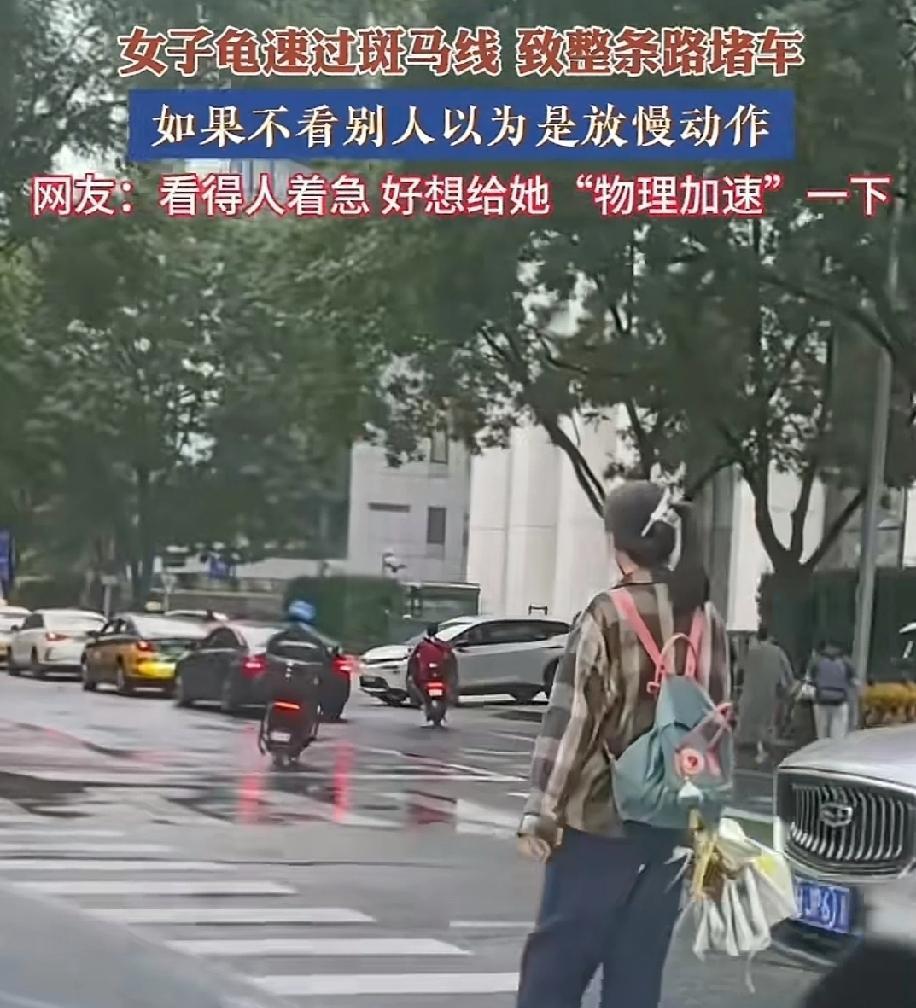 9月22日,北京的一条道路上,发生了堵车。其原因就是女子过斑马线时,龟速穿过马路