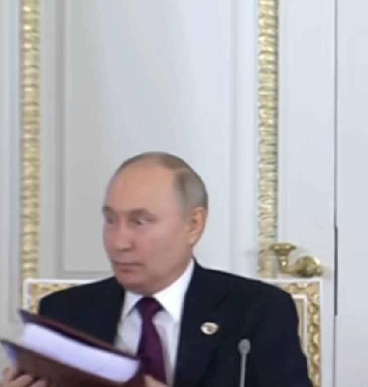普京:怎么这么多? 普京参加会议看到一大摞文件,做出各种搞怪鬼脸表情 这