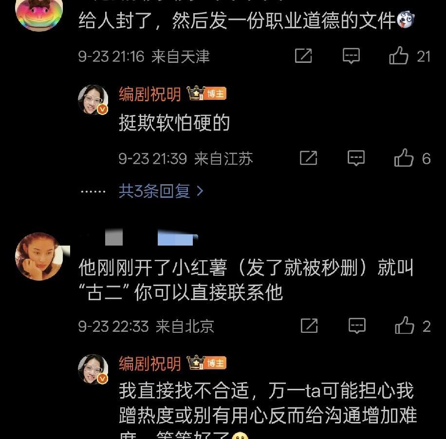 真有意思!王家卫和秦雯这是急眼了吧! 前两天,古二发文,爆料王家卫和秦雯白嫖他的创作,却没有给他应有的待遇和报酬。 当时的王家卫和秦雯,态度傲慢,丝毫没有任何的歉意。 结果昨天古二再发力,爆出了王家卫和秦雯的录音,让吃瓜群众大呼过瘾, 这下,两个上海银都慌了,也不顾自己虚伪的优雅人设了,直接把人家号给炸了! 然后又发了一篇气急败坏的声明,已经明显不顾风度了! 古二的偷录行为固然值得商榷,但是这俩人的形象在内娱圈内算是彻底崩了吧! [呲牙][呲牙]#王家卫# #秋日生活打卡季#