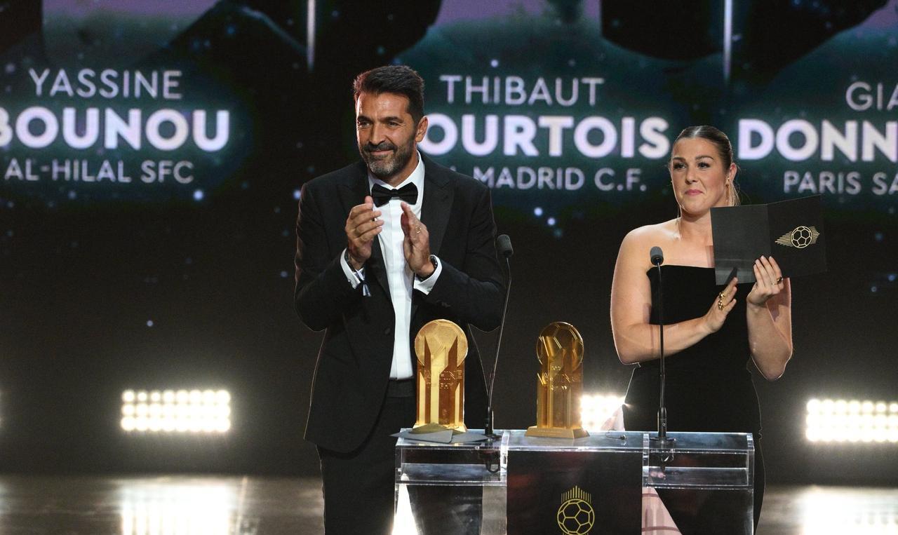布冯:“昨晚,我很荣幸的与玛丽·厄普斯共同向汉娜·汉普顿、多纳鲁马颁发了雅辛奖。 多纳鲁马获得的奖项是他个人以及整个意大利足球的骄傲。 这是一个非凡的夜晚。我要感谢《法国足球》的邀请,并祝贺所有在台上获奖的冠军。”