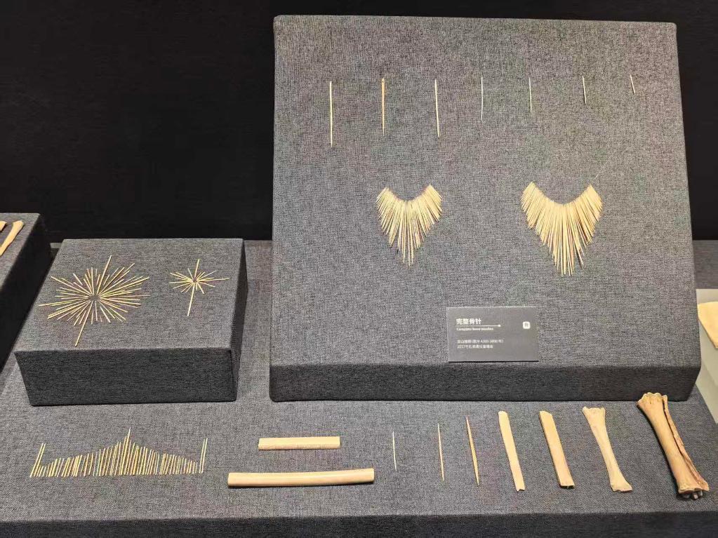 石峁博物馆珍藏的骨针。新华社记者张京品摄