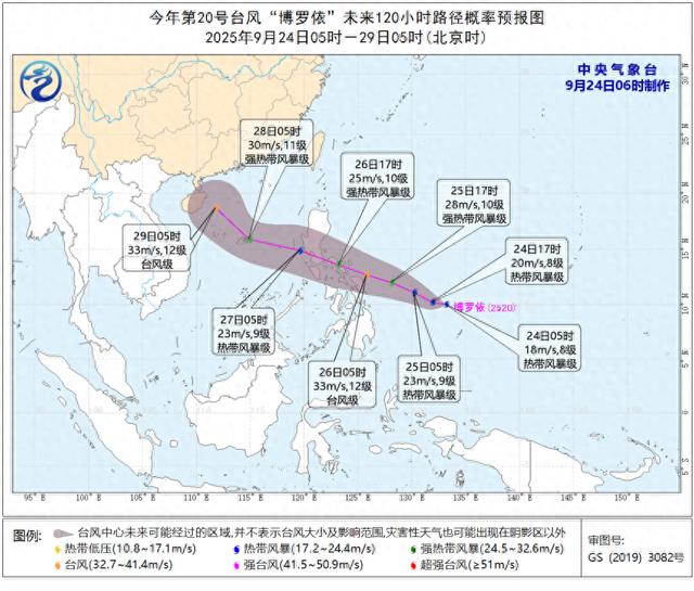中央气象台9月24日6时对“博罗依”的路径和强度预报