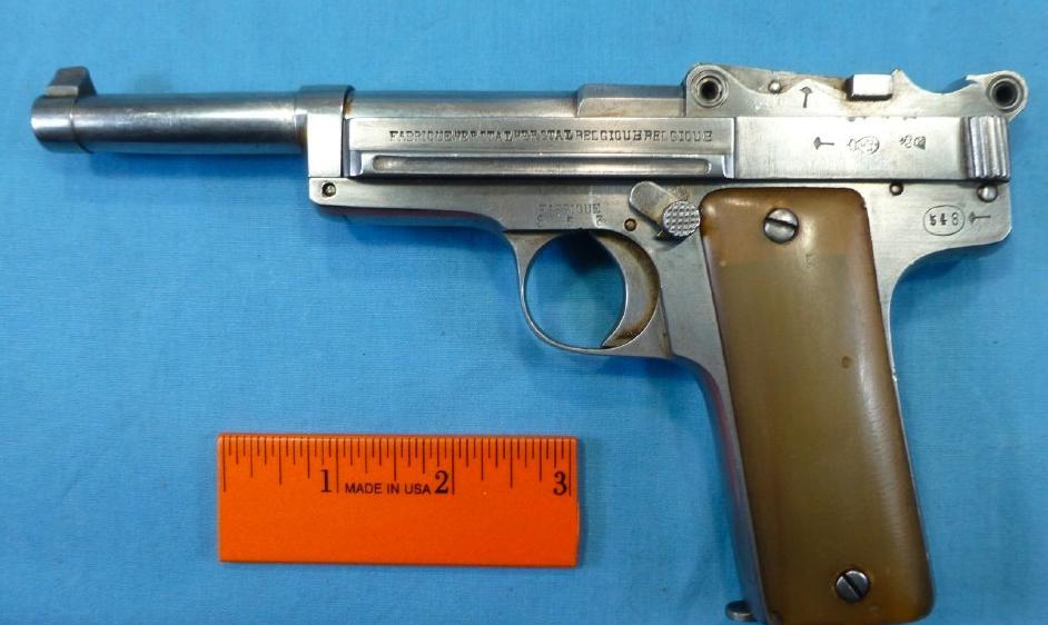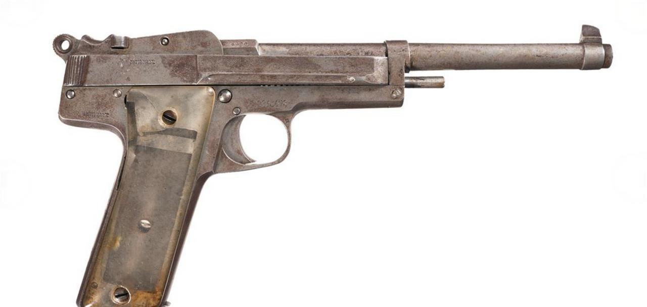 [呲牙] 旧中国枪匠的作品(4)—— 这是两款旧中国仿制的欧洲式半自动手枪,看上去有类似毛瑟以及曼利夏手枪的部分特征。枪身和套筒上标有各种模仿欧洲原厂的检验标记,还有一个单词“NATIONALE”,大概是模仿比利时列日市的国家武器检验证明。 两支枪都配有固定的片状准星,还有切线式照门(一种可调节的照门,通常有一条带刻度如距离的滑轨,射手可以根据目标距离滑动照门进行调节,以提高远程射击精度),但只是外形相似,其实无法调节,纯属装饰。其中一支手枪的握把贴片为透明丙烯酸材质,握把后侧开槽,可以用于安装枪托。 整体而言,两支手枪的机械加工水平都不错,烤蓝工艺也说得过去。从图4来看,这种构型的手枪产量还不小,不知道到底是哪个“兵工厂”出品的。