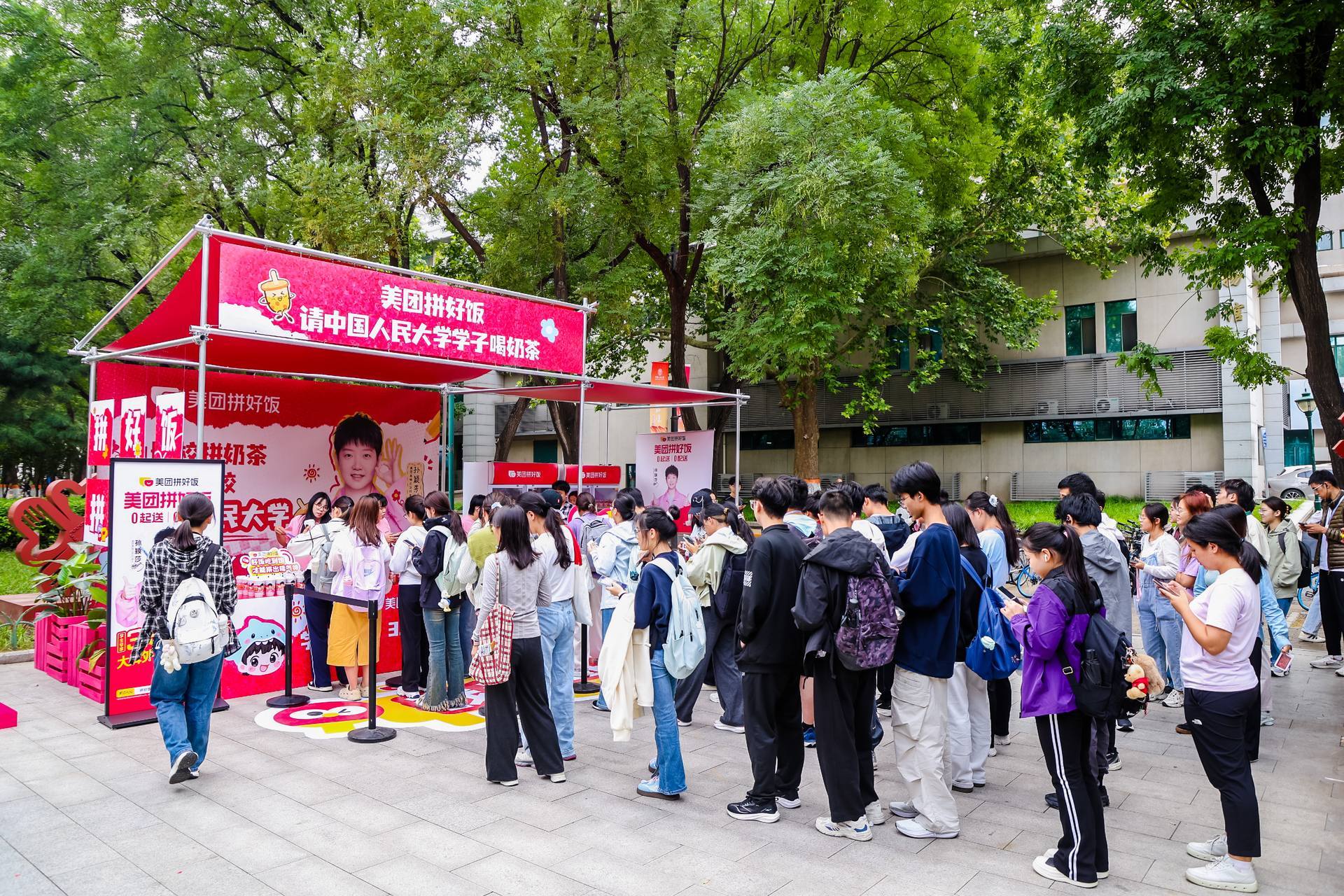 在『我为母校拼奶茶』活动中,中国人民大学最终获得了冠军!!美团拼好饭直接拉着奶茶,把福利送到了校园里!!这诚意谁顶得住啊~