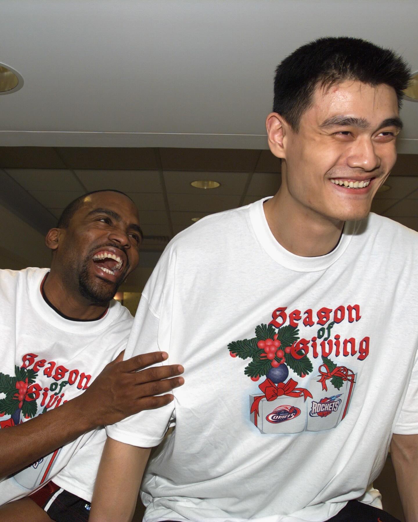 此前,老猫莫布里受邀跟随火箭参加了姚基金的中国训练营活动,两人也在中国重聚。