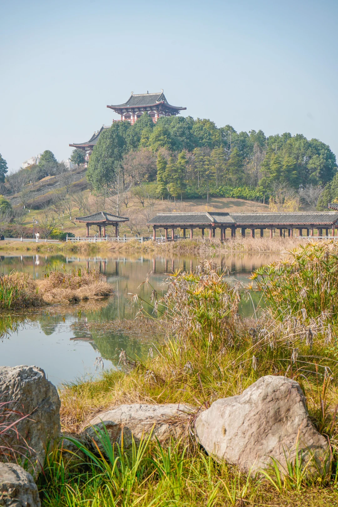 公园整体是模仿汉唐古风的建筑修建而成