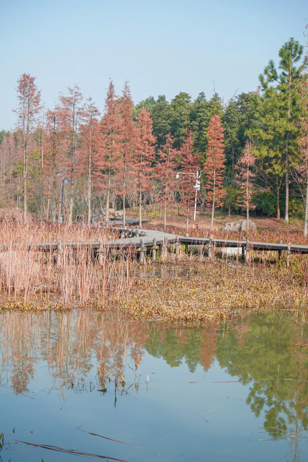 另一部分就比较偏向自然,尤其以秋天红了的水杉林最为出片和好看。