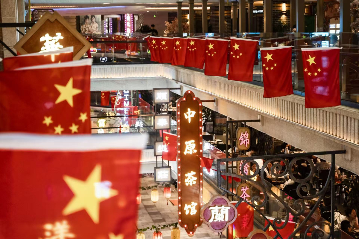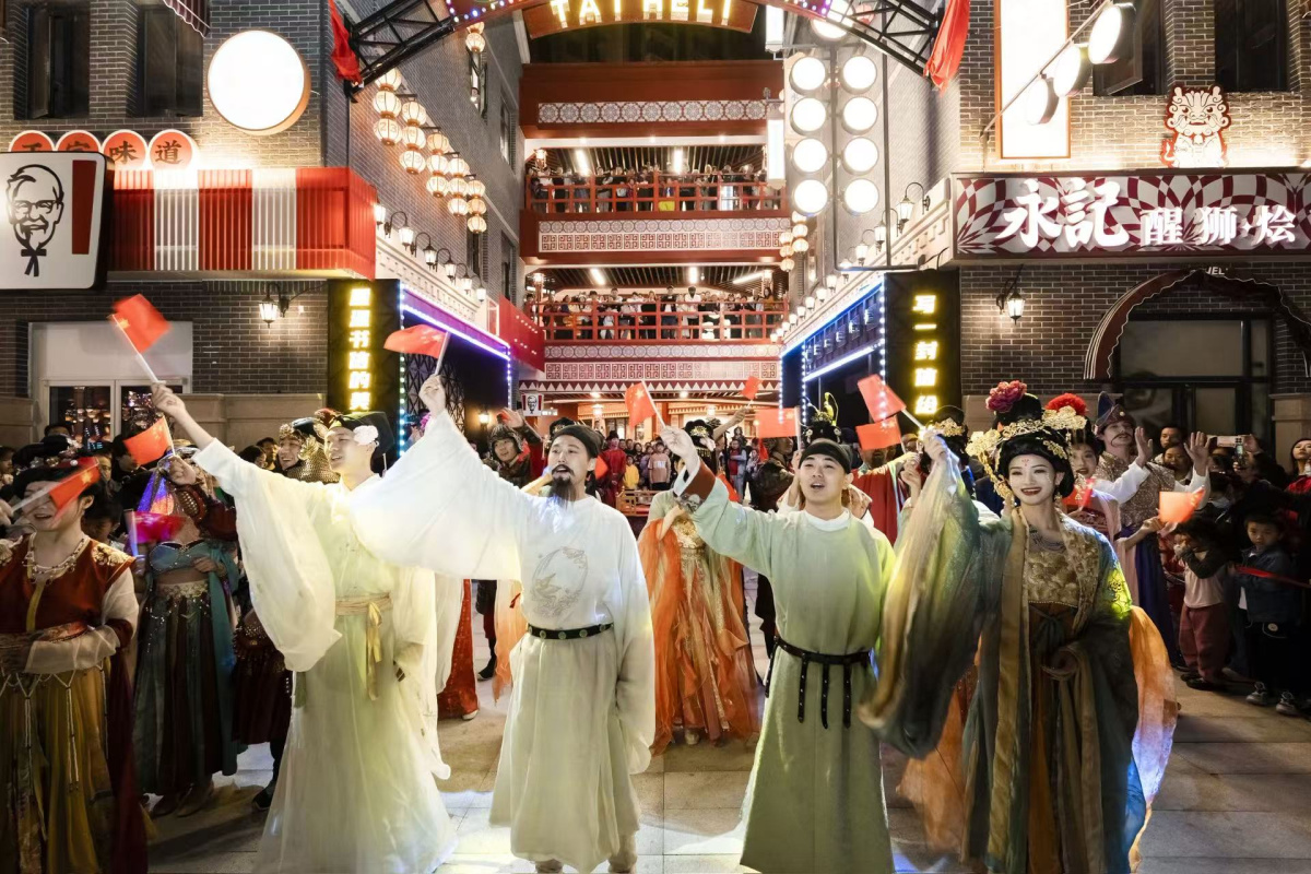 中铁·泰和里沉浸式穿越:9月25日-10月8日,“泰和里城市文化节·国潮奇遇记”奉上超100场精彩演艺;10月1日-8日,街区在数千面五星红旗的映衬下,NPC与现场游客齐唱红歌,共同为祖国庆生。