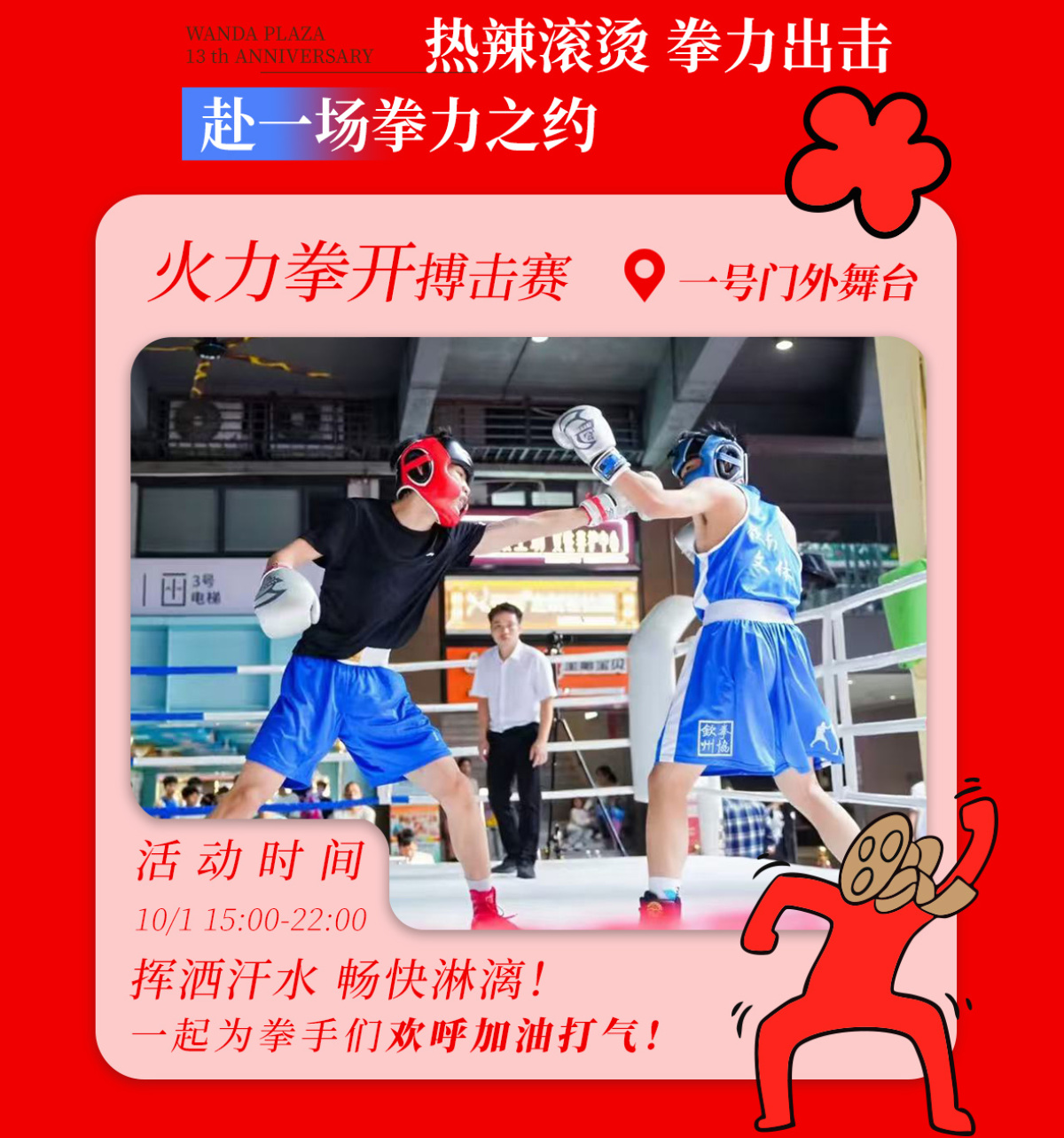 郑州二七万达广场精彩赛事:10月1日-8日,迎来“小小英雄少儿拳击挑战赛”,现场设置专业擂台,超200场精彩对决;“少儿街舞大赛”汇聚200余组参赛选手、Breaking等多种舞种激情开赛;广场上特别设置了“掘金派队”主题探索区域,还有餐饮、服饰、特惠观影等优惠。