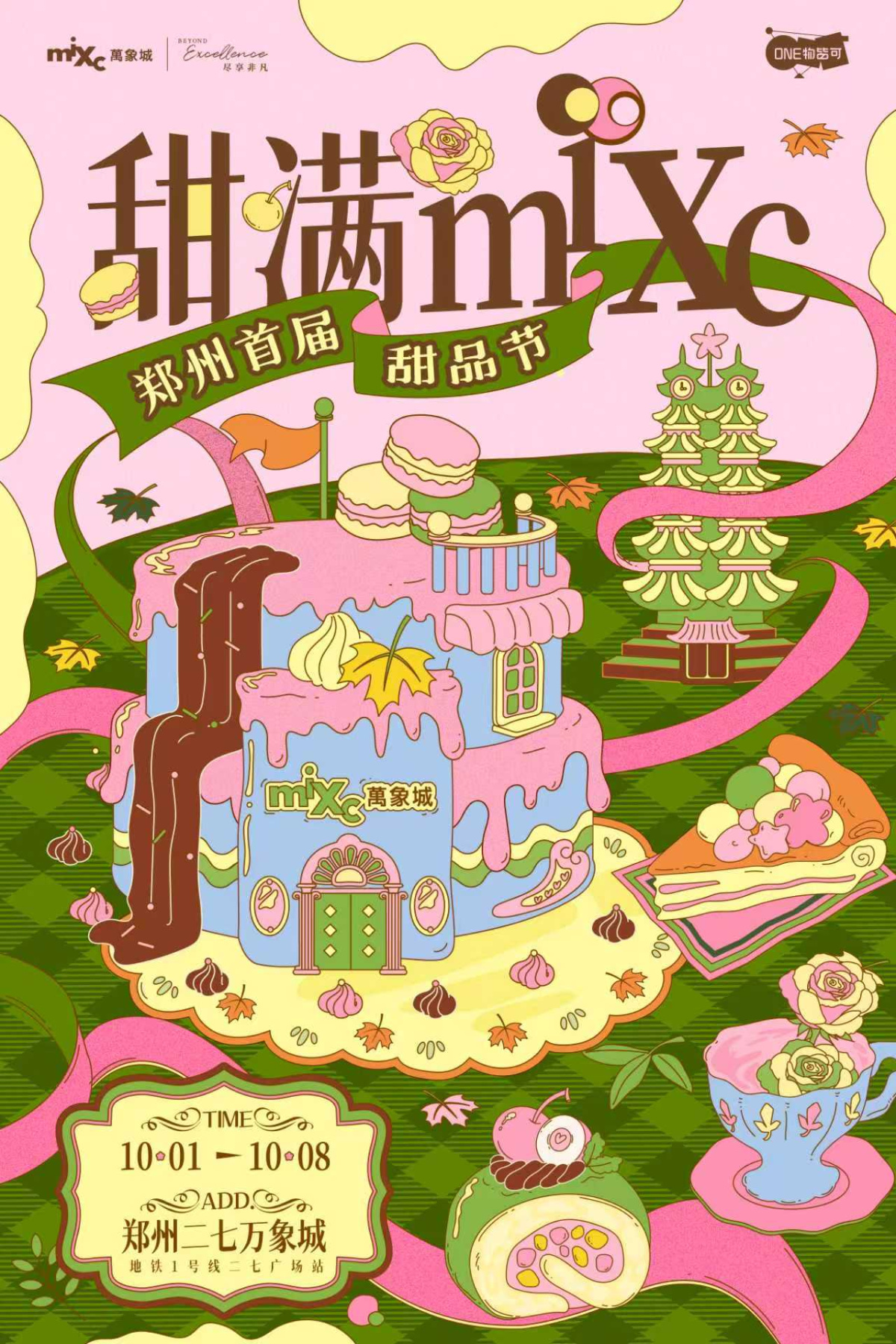 二七万象城甜蜜来袭:10月1日-8日,“甜满Micx——郑州首届甜品节”集合了70+市集摊位,70%首进/网红品牌,5000份甜品福利免费领取,商场内还有餐饮及零售团券活动。