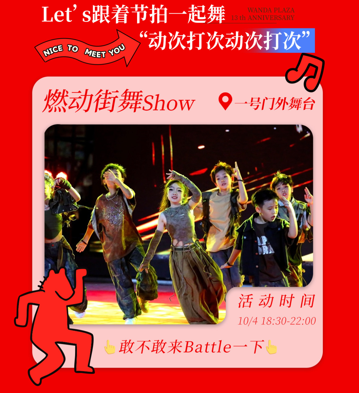无限城购物中心“潮起无限”:假期期间,“乐队嘉年华”活动邀请市内知名乐队现场演出,“夜场KPOP随机舞蹈”热情开跳,“国潮来袭游园会”让年轻群体更贴近和了解传统文化活动,还有“小丑兵团巡游”在德化步行街上与游客欢乐互动,更有全场餐饮娱乐折扣等多种优惠。